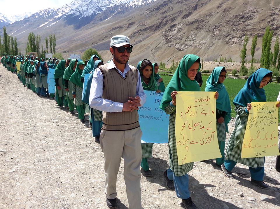 گاہکوچ(ایم ایچ گوہر) عالمی یوم ماحولیات اور مقامی آبادی میں اس حوالے سے شعوروآگاہی بیدار کرنے کے لئے ڈی جے ہائی اسکول گلاغمولی کے طالبات نے ریلی نکالی. ریلی کی قیادت اسکول کے اساتذہ کر رہے تھے،طالبات نے اس دن کے حوالے سے مختلف پلے کارڈز اٹھا رکھے تھے جن میں ماحول کے تحفظ کے حوالے سے نعرے درج تھے. طالبات نے اس موقعے پرٹیموں کی شکل میں گاؤں کے مختلف علاقوں میں موجود کوڑا کرکٹ کو ٹھکانے بھی لگایا.اور مقامی آبادی سے صاف ستھرے معاشرے کی اہمیت و افادیت کے حوالے سے بھی بات کی. ریلی جب واپس اسکول پہنچی توعالمی یوم ماحولیات کے حوالے سے تقریب کا اہتمام کیا گیا، اس موقع پر طالبات سے خطاب کرتے ہوۓ اسکول کے ہیڈ ماسٹر اور اساتذہ نے کہا کہ "عالمی بدلتے ہوۓ ماحولیاتی اثرات کے مقابلے کے لئے ہمیں اپنے ماحول، جنگلات، جنگلی حیات، صاف ہوا اور پانی کے لئے ٹھوس اقدامات اٹھانے کی ضرورت ہے. گلگت بلتستان کو الله تعالی نے خوبصورت ماحول سے نوازا ہے، مگر آہستہ آہستہ ہمارے ماحول کو بھی مختلف خطرات کا سامنا کرنا پڑھ رہا ہے. اس حوالے سے عوامی اور حکومتی سطح پراقدامات اٹھانے کی ضرورت ہے”. انھوں نے مزید کہا” اپنے ارد گرد کے ماحول کو صاف رکھنا ہمارے ایمان کا حصہ ہے، جس سے ہم نہ صرف مختلف بیماریوں سے محفوظ رہتے ہیں بلکہ ہم عالمی سطح پر ماحول کو درپیش مختلف خطرات اور چلنگس سے بھی بچا سکتے ہیں”. گاؤں گلاغمولی ضلح غذر کے آخری یونین کونسل ٹیرو میں واقع ہے. جو دنیا کی نایاب ٹراؤٹ مچھلی کی افزائش نسل اورپہاڑی خوبصورت جانور”خوش گاؤ” کے حوالے سے مشہور ہے. مگر ماحولیاتی تبدیلیوں اور ٹراؤٹ مچھلی کی غیر قانونی شکار سے دونوں کو شدید خطرات لاحق ہیں.