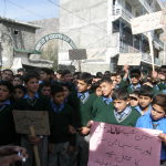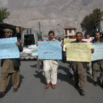 گلگت( فرمان کریم) گزشتہ روز معصوم اور بے گناہ قتل ہونے والے حسنین کے خلاف شہر کا ماحول سوگوار رکھا۔ قتل کے خلاف سول سوسایئٹی، طلباء وطالبات، کاروباری حضرات سمت مختلف تنظمیوں کی طرف سے احتجاج کیا گیا۔ احتجاج صبح 10 بجے سے شروع ہو اور شام 4 بجے تک جاری رکھا۔ عوام نے اتحاد چوک پر احتجاج کیا۔ جہاں سے مظاہرین چیف کورٹ کے باہر پہنچ کر احتجاج کیا۔ اس کے بعد مظاہرین نے سٹی تھانے کے باہر احتجاج کیا۔احتجاجی مظاہرین سے خطاب کرتے ہوئے مختلف طبقہ فکر سے تعلق رکھنے والے افراد نےتقریر کرتے ہوئےکہاکہ گلگت شہر میں پے در پئے بچوں کے خلاف سفاکانہ، بربریت آمیز سلوک اور قتل کی بھر پور مذمت کیا۔ اور مطالبہ کیا کہ گلگت بلتستان میں بچوں کے حقوق کا نیز ان کے جان مال کے تحفظ کو یقنی بنائے۔ اور اس موقعے میں ملوث ملزمان کو جلد از جلد کہڑی سزا سُنا یا جائے۔ تاکہ آیندہ ایسے واقعات رونما نہ ہوسکے۔ اُنہوں نے مذید مطالبہ کیا کہ ایف آئی آر میں انسداد دہشت گردی کے دفعات شامل کیا جائے۔ اس قتل کے واقعے کے خلاف دکانداروں نے بھی لواحقین سے اظہار یکجہتی کے لئے اپنی دکانین بند کرکے احتجاجی مظاہرے میں شریک ہوئے۔