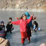 گلگت (عبدالرحمان بخاری سے )خلتی جھیل کا پانی جم گیا ، جھیل کی بالائی سطح کو بچوں اور بڑوں نے کھیل کا میدان بنالیا.
