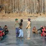 بچوں اور منچلوں نے منجمد خلتی جھیل کو کھیل کا میدان بنا دیا