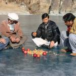 ضلع غذر کے گاؤں خلتی میں جھیل کا پانی شدید سردی کے نتیجے میں جم گیا ہے جہاں کھیل کے میدان سے محروم بچوں نے جھیل کو گراونڈ قرار دیکر اس پر کھیل و تفریح شروع کردی ہے.