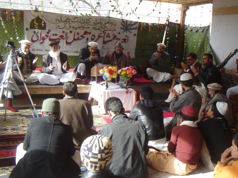 چترال(گل حماد فاروقی) چترال سے 45 کلومیٹر دور دروش کے مقام پر خان ہاؤس کورو میں نعتیہ مشاعرہ اورمحفل نعت خوانی منعقد ہوا۔ محفل کا اہتمام علاقائی زبان اور ثقافت کو تحفظ دینے والی تنظیم Preserving Indeginious Culture and Language نے کیا تھا۔اس محفل میں سابق چئیرمین ڈسٹرکٹ کونسل الحاج خورشید علی خان مہمان خصوصی تھے جبکہ محفل کی صدارت پرنسپل ریٹائرڈ حاجی امین الرحمان چغتائی نے کی۔ چئیرمین پی آئی سی ایل اعجاز احمد نے میزبانی کے فرائض انجام دئے۔