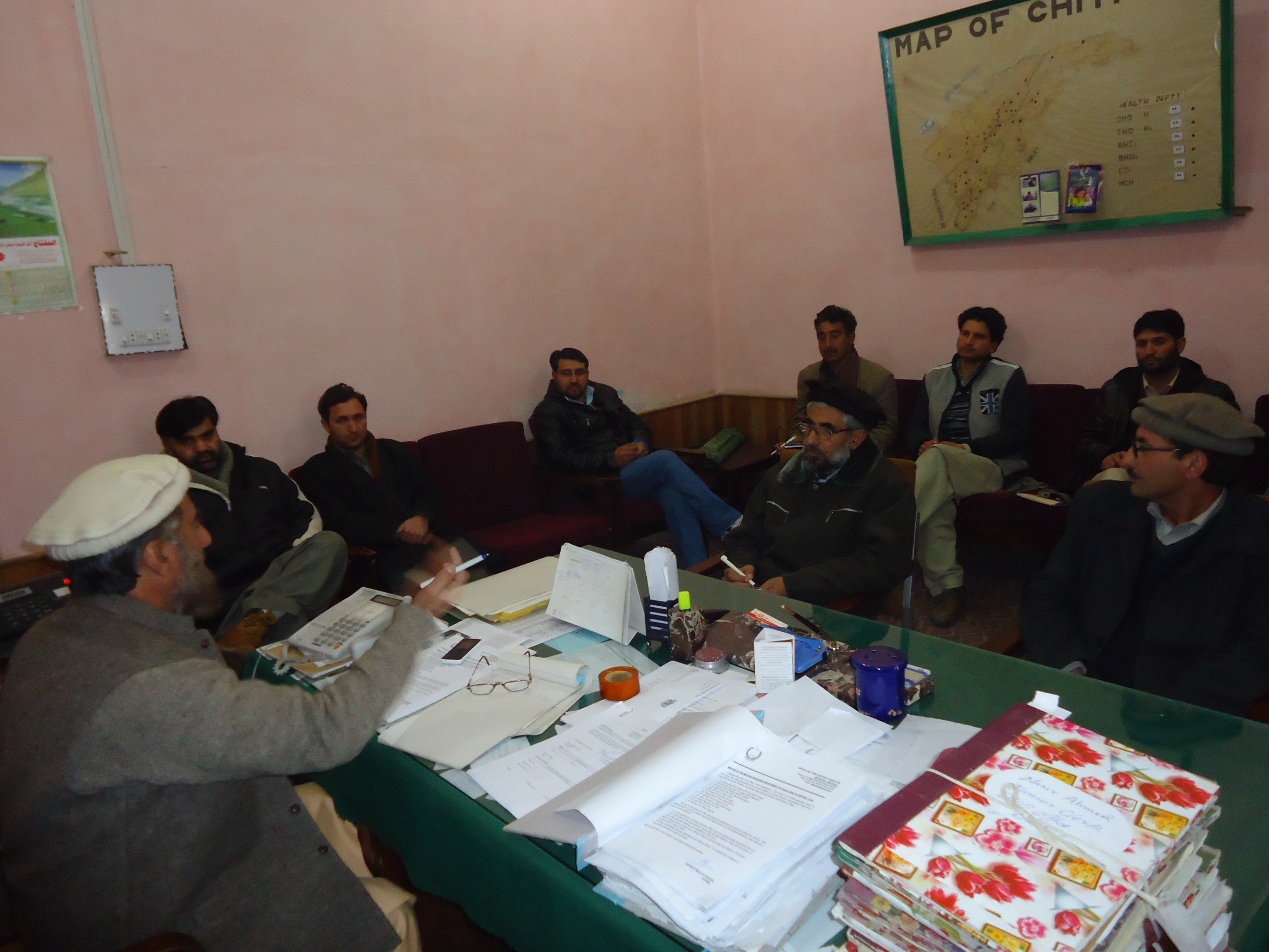 ڈسٹرکٹ ہیلتھ آفیسر چترال ڈاکٹر اسرار اللہ نے کہا ہےکہ وہ اور اُن کی پوری ٹیم چترال میں لوگوں کو صحت کی سہولیات فراہم کرنے میں دن رات کو ششوں میں مصروف ہیں ۔ اور چترال کے طول وعرض میں مریضوں کو اُن کے مقامی ہسپتالوں میں علاج معالجے کی بہتر سہولیات کی فراہمی اُن کی اولین ترجیح ہے ۔ اس سلسلے میں صوبائی حکومت کا اُن کو بھر پور تعاون حاصل ہے ۔ وہ جمعرات کے روز اپنے آفس میں آواز ڈسٹرکٹ فورم کے ساتھ ایک میٹنگ میں اپنے خیا لات کا اظہار کر رہے تھے ۔ اس موقع پر ایم ایس ڈی ایچ کیو ایچ ڈاکٹر نورالاسلام ، ایڈیشنل اسسٹنٹ کمشنر چترال مظہر علی شاہ ، کوآرڈنیٹر ساوتھ ایشیاء پاکستان محمد اسماعیل اور آواز کے ممبران موجود تھے ۔ ڈی ایچ او نے کہا ۔ کہ آج چترال کے ہر سرکاری ہسپتال میں داخل مریض کو اُن کی میز پر ادویات فراہم کئے جا رہے ہیں ۔ اور بازار کے مقابلے میں ہسپتالوں کے ادویات کا معیار کہیں بہتر ہے ۔ انہوں نے کہا ۔ کہ چترال کے کئی ہسپتالوں کی اپگریڈیشن کیلئے وہ مسلسل جدو جہد میں مصروف ہیں ۔ آواز فورم نے صحت کے حوالے سے اُن کی کوششوں کی تعریف کی ۔اور کہا کہ پہلے کے مقابلے میں صحت کی موجودہ سہولیات میں بہت زیادہ بہتری آئی ہے ۔ اور اس سلسلے میں موجودہ حکومت کی صحت پالیسی اور آپ کی کوششین دونوں قابل تعریف ہیں ۔انہوں نے ایون آر ایچ سی میں ڈی ایچ او کی طرف سے خصوصی دلچسپی لے کر بعض مسائل کے حل کو انتہائی خوش آیند اقدام قرار دیا ۔ اور ڈینٹل یونٹ کی بہتری و لیبر روم کوکشادہ کمروں میں منتقلی کیلئے کئے جانے والے اقدامات پر اُن کا شکریہ ادا کیا ۔ فورم نے اس امر پر انتہائی خوشی کا اظہار کیا ۔ کہ آر ایچ سی ایون کو کٹیگری ڈی ہسپتال بنانے کیلئے بھی ڈی ایچ او کی کوششیں دفتری سطح پر جاری ہیں ۔فورم نے بمبوریت بی ایچ یو کے سلسلے میں اقدامات اٹھانے کا مطالبہ کیا ۔ کیونکہ پی آر سی ایس پراجیکٹ ختم ہونے کے بعد بی ایچ یو میں ڈاکٹرز اور دیگر سٹاف کی کمی درپیش ہے ۔ جس پر ڈی ایچ او نے فوری طور پر مقامی فریش ڈاکٹر کو وہاں تعینات کرنے او ر ہر ممکن طور پر لوگوں کو علاج کی سہولت پہلے سے بہتر طریقے سے فراہم کرنے کا وعدہ کیا ۔ایک سوال کے جواب اُنہوں نے کہا کہ چترال کے ریحانکوٹ گاؤں میں گندگی کے ڈھیر کو ٹھکانے اور گندہ نالیوں میں پڑے ہوئے پائپ لائنوں کا مسئلہ بہت جلد حل کیا جائیگا۔