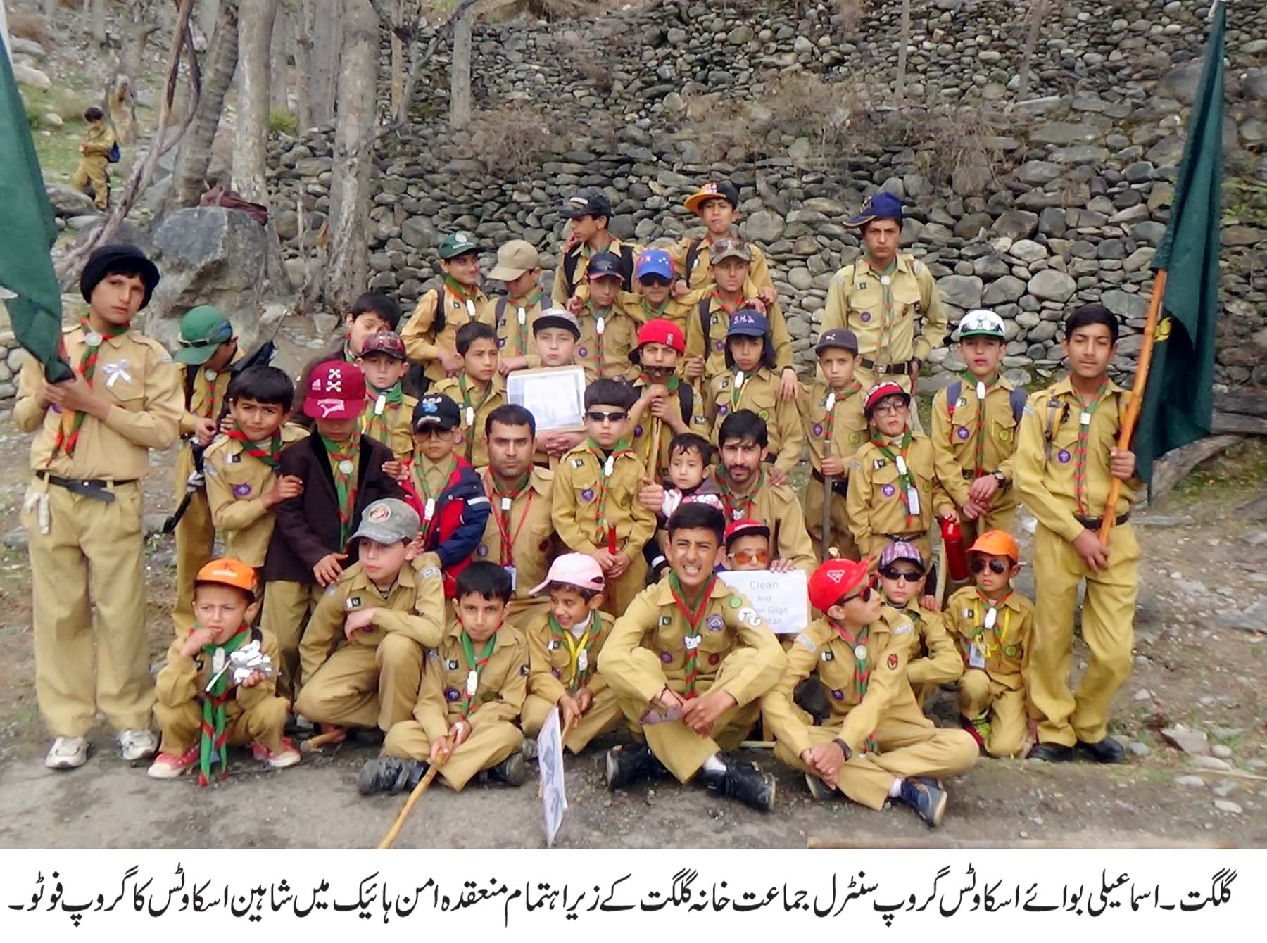 گلگت (پریس ریلیز) اسماعیلی بوائز سکاوٹس گروپ سنٹرل جماعت خانہ گلگت سے سالانہ شاہین سکاوٹس امن ہائیک کا انعقاد کیا گیا بائیک کا آغاز سنٹر ل جماعت خانہ سے کارگاہ بدھا پوائنٹ تک کیا گیا امن ہائیک میں مجموعی طور پر 38شاہین شکاوٹس نے حصہ لیا ہائیک کا مقصد علاقے میں امن اخوت و بھائی چارگی کو فروغ دینا تھا جبکہ اس کا بنیادی مقصد تاریخ کو جاننے کے علاوہ علاقے میں صاف و شفاف ماحول کو پروان چڑھاناتھا۔اس ہائیک میں ریسکیو 1122نے بھی حصہ لیا اور شاہین اسکاوٹس کو ابتدائی طبئی امداد کے حواے سے ٹریننگ دیا ۔ بسین اور یاثنی کے عمائدین نے بچوں کی حوصلہ افضائی کرتے ہوئے کہا کہ ایسے پروگرامز کے انعقاد سے علاقے میں امن و بھائی چارگی کو فروغ ملتی ہے اور گلگت بلتستان کے عوام میں بچوں کے پروگرامز کے حوالے سے شعور پید اہوتا ہے ۔ ہائیک کے آخر میں ارد گرد کے علاقے کی صفائی بھی کی اور بچوں نے اس ہائیک کو فائدہ مند اور سبق اموز قرار دیا۔