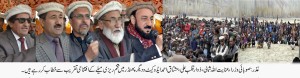 صوبائی وزیر اطلاعات، قوم سے مخاطب ہو کر کہا کہ آئیے آج ہم عہد کرتے ہیں کہ امن کی خاطر ہم کسی بھی قربانی سے دریغ نہیں کرینگے۔ اور پورے خطے میں امن کا پرچار کرینگے امن کے شمع خطے کے ساتوں اضلاع میں روشن کرنے کا تہیہ کر رکھا ہے قیام امن ہمار مشن ہے اور ہمیں اس مشن سے کوئی روک نہیں سکتا۔ قیام امن کیلئے ہمیں ایک دوسرے کو برداشت کرنا ہوگا۔ صاف شفاف اور غیر جانبدار انتخابات اولین ترجیح ہے عوام دیانتدار قیادت کے ذریعے خطے کی تعمیر و ترقی اور روشن مستقبل لا سکتے ہیں۔صوبائی وزیر اطلاعات کا مزید کہنا تھا کہ غذر میں آباؤ اجداد کی ثقافت آج بھی زندہ ہے قدیمی وایت تخم ریزی نے آج قوم کو اکھٹا کیا ہے ہم چاہتے ہیں کہ پورے خطے کے لوگ اکٹھے بیٹھیں اور پیار و محبت بانٹیں۔ جو قومیں اپنی ثقافت سے دور ہوتی ہے وہ معاشرے سے مٹ جاتی ہے بہادر قومیں اپنے اسلاف کی رویات کو کبھی مٹنے نہیں دیتیں ہم خطے میں ثقافت، ادب کی فروغ اور صحت مند سرگرمیوں کو ممکن کامیاب بنائیں گے۔ پولو ہمارا قومی کھیل ہے پولو کے کھلاڑی خوبصورت اور جانفشانی سے کھیل،کھیل کر دنیا کو یہ بتانا چاہتے ہیں کہ ہم پرامن ہیں اور امن کے خواہاں ہیں اس موقع پر انہوں نے مزید کہاکہ ہم امن کے سوالی ہیں اور ہم گھر گھر، قریہ قریہ اور چپے چپے جائیں گے اور قوم کو ایک تسبح کی دانوں کی طرح پروئیں گے علاوہ ازیں جنڈروٹ میں پرائمری سکول میں ایک تقریب سے خطاب کرتے ہوئے صوبائی وزیر اطلاعات نے کہا کہ ہمیں جان بوجھ کر آپس میں لڑایا جارہا ہے عالمی قوتیں معصوم لوگوں کو لڑا کر اپنے مزموم مقاصد حاصل کرنا چاہتی ہے انشاء اللہ ہم مکروہ عزائم خام میں ملا دیں ہمارے خطے کے نوجوانوں میں بے انتہا صلاحیتیں موجود ہیں ہم ان کو نکھارنے کیلئے پلیٹ فارم مہیا کرینگے کاروان امن آج پورے خطے میں گردش میں ہیں جب تک مستقل و پائیدار امن قائم نہیں ہوتا ہم چین سے نہیں بیٹھیں گے