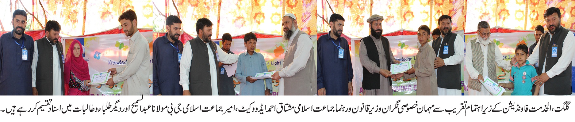 گلگت(پریس ریلیز) الخدمت فاونڈیشن گلگت بلتستان فلاحی سرگرمیوں کو مذید مستحکم کر رہا ہے، جون میں ڈائیگناسٹک سینٹرکا منصوبہ شروع کیا جائیگا، یتیم بچوں کیلئے آغوش ہوم کے پروجیکٹ کی منصوبہ بندی کی جارہی ہے، گلگت کے مختلف علاقوں میں صاف پانی کے منصوبے شروع ہو چکے ہیں ، آرفن کئیر پروگرام کے تحت اگلے سال تک 400 یتیم بچوں کی تعلیمی کفالت کی جائیگی، ان خیا لات کا اظہار صدر الخدمت فاونڈیشن گلگت بلتستان حبیب الرحمن نے الخدمت آرفن کئیر پروگرام کے زیر اہتمام ایوارڈ وننگ سرٹیفیکیٹ کی تقسیم کے موقع پر خطاب کرتے ہوئے کیا ، انہوں نے کہا کہ الخدمت زندگی کے تمام شعبہ جات میں دکھی انسانیت کی خدمت پر یقین رکھتا ہے، اس موقع پر کوارڈینیٹر آرفن کئیر پروگرام اسماعیل شریعت یار نے کہا کہ یتیم طلباء کی سکالر شپ کی مد میں الخدمت سالانہ 80 لاکھ روپے خرچ کر رہی ہے، یہ رقم انتہائی شفاف طریقے سے بچوں کے گارڈئینز کے اکاونٹ میں منتقل کی جا رہی ہے، طلبہ کو سکول بیگ ، کاپیاں اور کتابوں کے علاوہ وردیاں بھی دی جا رہی ہیں ، صدر بزم روشنی وقاص نے اپنے خطاب میں کہا کہ بزم روشنی گلگت میں مختلف پروگرامز کے ذریعے طلباء کی ذہن سازی کر رہی ہے، باطل قوتیں آج ہمارے نوجوانوں کو کھو کھلا کرنے پر تلی ہوئی ہیں ، ایسے میں نوجوانوں کی درست سمت میں رہنمائی وقت کی اہم ضرورت ہے،پروگرام میں مہمان خصوصی نگران وزیر قانون مشتاق احمد ایڈوکیٹ ، صدر الخدمت فاونڈیشن حبیب الرحمن ، امیر جماعت اسلامی گلگت بلتستان مولانا عبدالسمیع اور دیگر نے یتیم طلبہ میں ایوارڈ وننگ سرٹیفکیٹ، اورسکول کٹس تقسیم کئے ۔