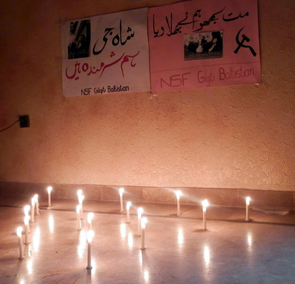 کراچی، این ایس ایف گلگت بلتستان کے کارکنوں نے سید حیدر شاہ رضوی کی یاد میں شمعیں روشن کیں