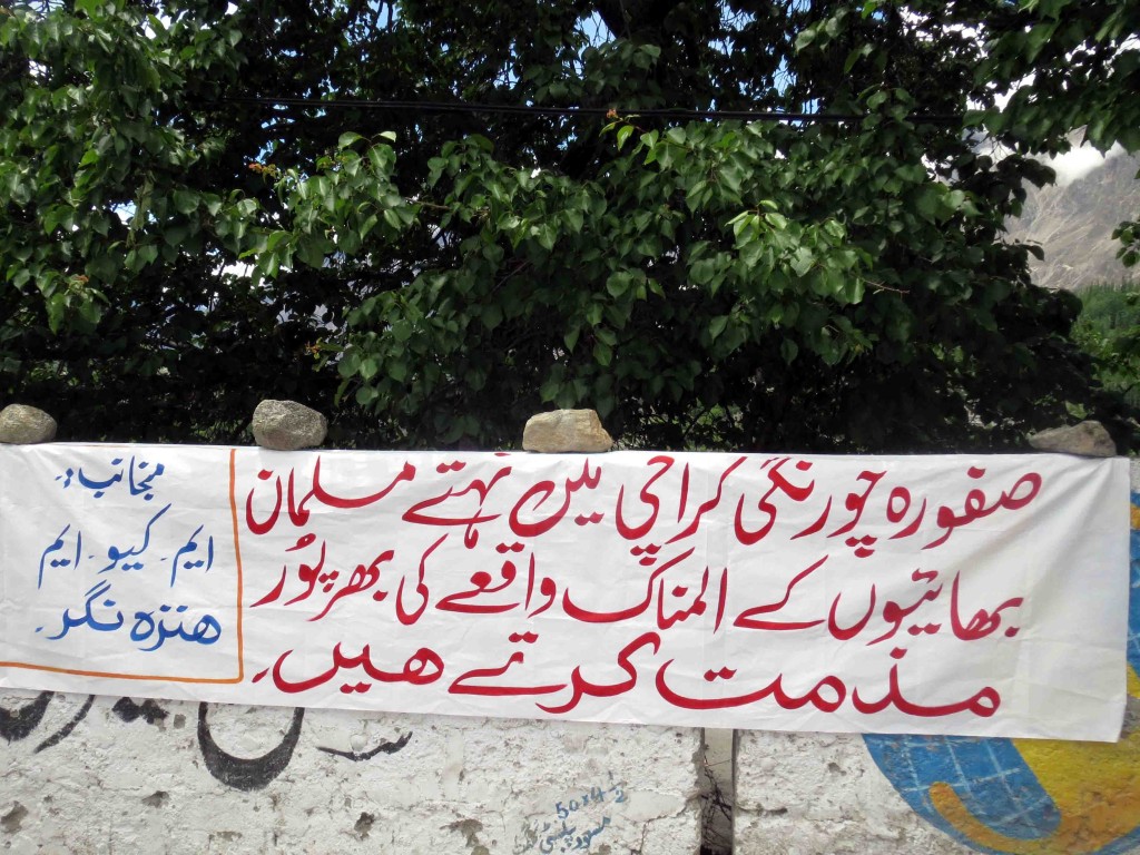 ہنزہ نگر(اکرام نجمی) ضلع ہنزہ نگر کے تمام کاروباری مراکز سانحہ کراچی کے مظلوموں کے ساتھ اظہار یکجہتی اور ظلم و بربریت کے خلاف احتجاجا بند رہے ۔