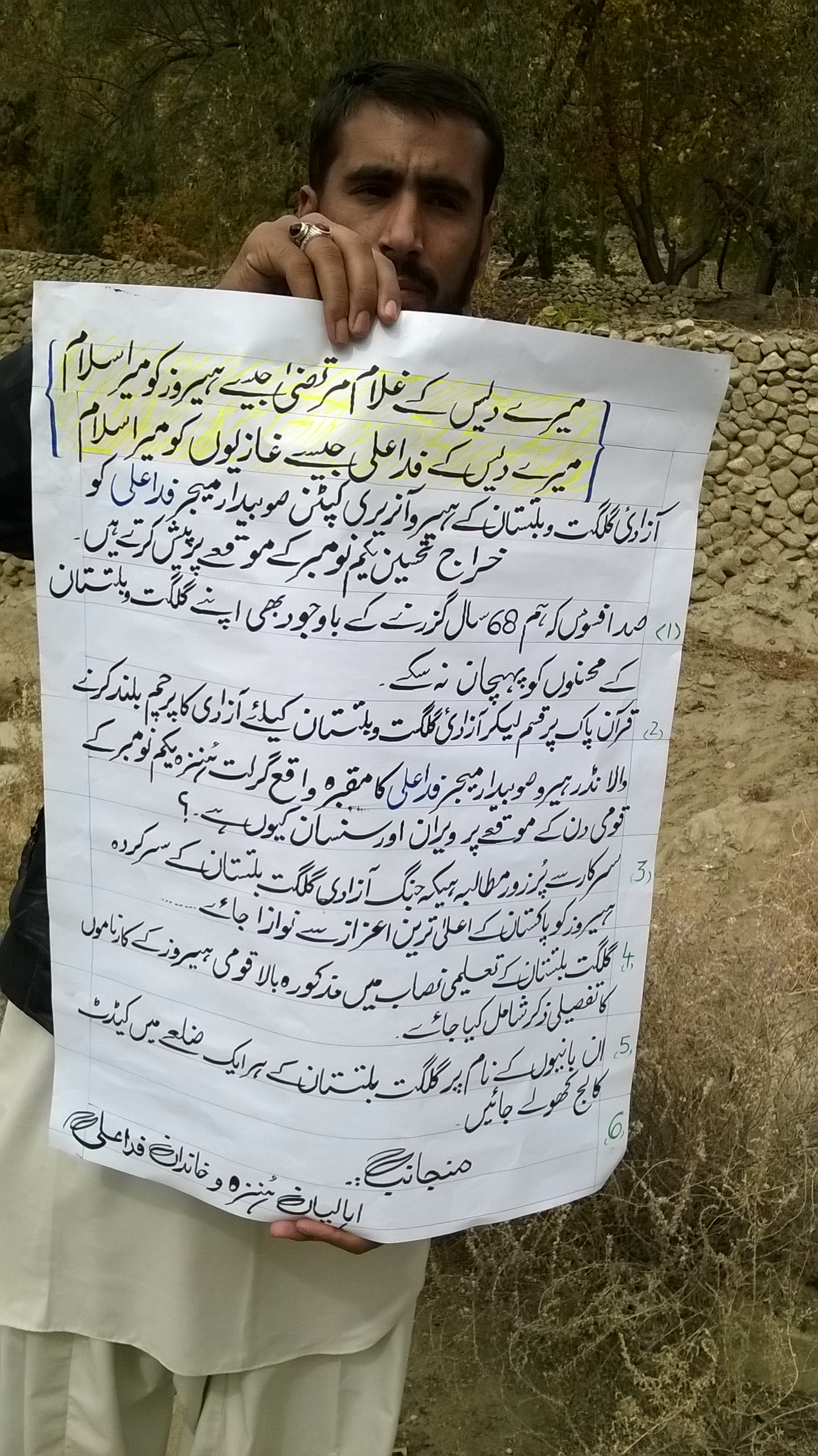 پہلا صفحہ/جنگِ آزادی کے ہیرو آنریری کیپٹن فدا علی اور میجر غلام مرتضی کو مسلسل نظر انداز کیا جا رہا ہے، خاندان کے افراد سراپا احتجاج/WP_20151101_11_39_44_Pro WP_20151101_11_39_44_Pro آپ کی رائے comments