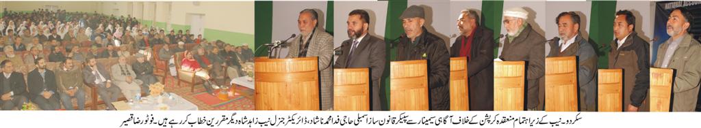 گلگت (پ ر) سوشل میڈیا کے مثبت اور منفی اثرات سے شعور و آگاہی اور یوتھ ڈسکشن فورم کا انعقاد معروف سماجی تنظیم PENاور AKRSPکے زیر اہتمام منعقد کی گئی۔ فورم میں مقررین پروفیسر اعجاز احمد خان، اشتیاق احمد یاد اور نصرت اللہ خان نے سوشل میڈیا کے مثبت اور منفی اثرات اور نوجوانوں کے کردار کے حوالے سے اظہار خیال کرتے ہوئے کہا کہ سوشل میڈیا ایک ایسا ذریعہ ہے جس سے مثبت اور منفی اثرات آجاتے ہیں۔ سوشل میڈیا مثبت اور منفی اثرات اور رویوں کو اپنانے کے بارے میں شعور اجاگر کرنا اور منفی اثرات سے احتیاطبی تدابیر کے بارے میں اپنا اظہار خیال پیش کیا اور کہا کہ سوشل میڈیا تمام لوگوں کو انفارمیشن پہنچاتا ہے۔ تمام مقررین نے گلگت بلتستان کے مخصوص معاشرتی حالات اور بدلتے اقتصادی پس منظر کو مدنظر رکھتے ہوئے ہمیں اپنے نوجوانوں کو سوشل میڈیا سے آنے والے ہر قسم کے منفی اثرات سے بچنے کیلئے اپنا بھرپور کردار ادا کرنے کیلئے تیار کرنا ہوگا۔