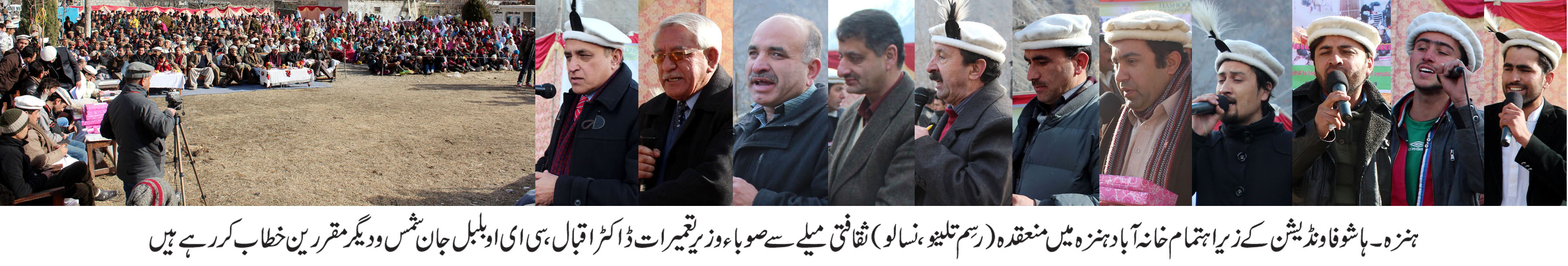 ہاشو فاونڈیشن گلگت بلتستان کے جنرل منیجر بلبل جان شمس نے اس موقع پر خطاب کرتے ہوئے کہا کہ ہاشو فاونڈیشن کی ہمیشہ یہی کوشش رہی ہے کہ امن وامان کی بحالی اور بھائی چارگی کے فروغ کیلئے ثقافتی پروگرامز کا سلسلہ جاری رہے۔ انہوں نے کہاکہ ہمارے ادارے نے ضلع غذر کے علاوہ ، استور اور ہنزہ کے بالائی علاقوں میں بھی ثقافتی پروگرامز کا انعقاد کیا ہے۔ بلبل جان شمس نے کہاکہ خانہ آباد کے عوام نے جس تعاون ، ڈسپلن اور نظم و ضبط کا مظاہرہ کیا ہے وہ ناقابل فراموش ہے انہوں نے شیناکی بالخصوص خانہ آباد کے عوام اور شیعہ امامی اسماعیلی لوکل کونسل برائے شیناکی کا بھی شکریہ ادا کیا۔ اس سے قبل رنگارنگ ثقافتی پروگرام کا انعقاد کیا گیا جس میں لوکل ڈانس، رسہ کشی اور مقامی گلوکاروں نے اپنے فن کا مظاہرہ کرکے داد وصول کی۔ ثقافتی شو میں ناصر آباد، خانہ آباد، مایون اور حسین آباد سے ہزاروں کی تعداد میں لوگوں نے شرکت کی۔ پاکستان مسلم لیگ ن کے سینئر رہنماوں جان عالم، ایمان شاہ، شاہد اقبال، ارمان شاہ کے علاوہ کرنل (ر) عبیداللہ بیگ نے بھی خصوصی طور پر اس ثقافتی شو میں شرکت کی۔