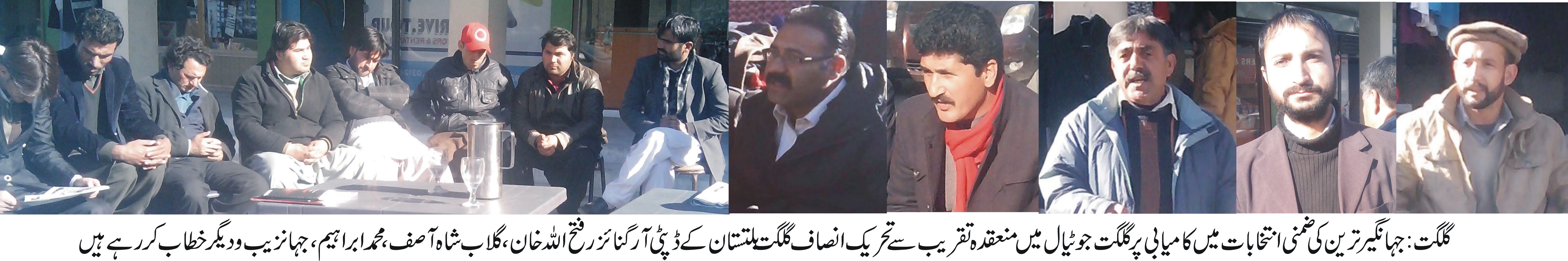 تقر یب سے خطا ب کر تے ہو ئے گلگت ڈسڑ کٹ کے آ ر گنا ئز ر گلا ب شا ہ آ صف ، انفا رمشین سیکر یٹری گلگت جہا نزیب نے کہا کہ حق اور با طل کا فیصلہ ہو چکا ہے۔ لو دھر اں کے عو ا م نے پی ٹی آ ئی کو ہی غر یب اور عا م آ دمی کا پر سان حا ل قرار دیا ہے۔ پی ٹی آ ئی گلگت بلتستا ن کے با نی رہنما محمد ابر ا ہیم نے کہا کہ ملک میں طبقا تی نظا م تیز ی سے پھیل رہا ہے جس کو روکنا انتہا ئی ضر و ر ی ہے۔ انہو ں نے کہا کہ این اے 154کا فیصلہ انصا ف اور سٹیٹس کو کے درمیا ن تھا جس میں انصا ف کو کا میا بی ملی۔ گلگت بلتستا ن میں بھی مر کز ی رو ش کو پر و ا ن چڑ ھا تے ہو ئے مک مکا کے ما ہر ین پنجے گا ڑ نے کیلئے نت نئے حر بے استعما ل کر رہے ہیں جس کا و ا ضع مثا ل گز شتہ انتخا با ت میں سا منے آ ئی جس میں حکو متی مشینر ی کا بے دریخ استعمال کیا گیا ۔