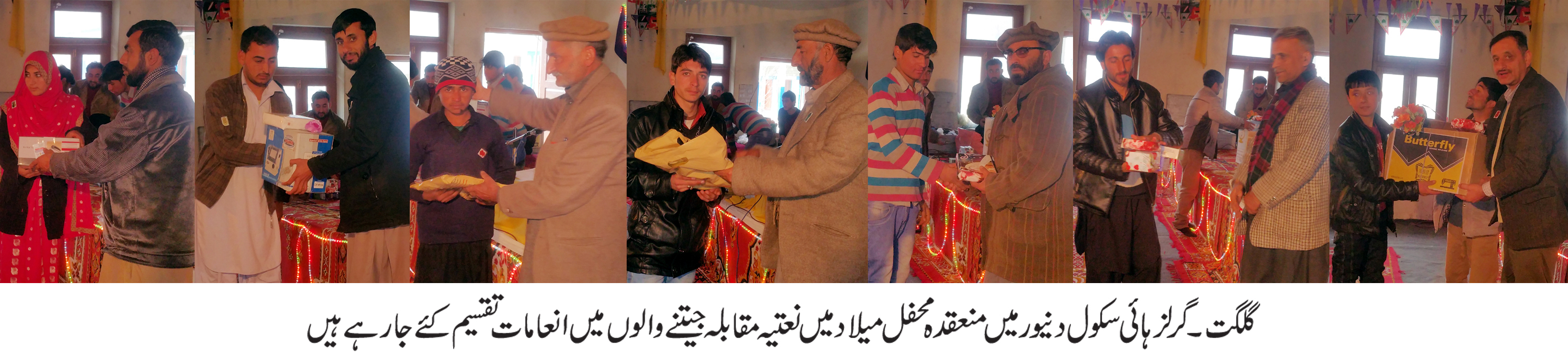 گلگت (پ ر) پاکستان مسلم لیگ ن کے سینئررہنما ایمان شاہ نے کہا ہے کہ محفل میلاد جیسی روحانی محفلوں کا انعقاد گلگت بلتستان کے ہر گاؤں، محلے اور گھروں میں کیا جانا چاہئے تاکہ مسلمانان گلگت بلتستان کو رسول پاکﷺ کی تعلیمات سے آگاہی ہوسکے۔ گورنمنٹ گرلز ہائی سکول دنیور میں منعقدہ محفل میلاد سے خطاب کرتے ہوئے انہوں نے کہاکہ اہلیان دنیور مبارک باد کے مستحق ہیں کہ انہوں نے محفل میلاد کی بابرکت محفل کا انعقاد کرکے روحانی تسکین کا اہتمام کیا ہے اور دنیور کے عوام کی خوش قسمتی ہے کہ اس علاقے کے سپوت غلام عباس نسیم ہر سال اس طرح کی بابرکت مجالس کا انعقاد کرتے ہیں جس سے بین المسالک ہم آہنگی پیدا ہوتی ہے اور دل رسول پاک ﷺ کے ذکر سے منور ہوتے ہیں انہوں نے اس امید کا اظہار کیا کہ وزیر اعلیٰ گلگت بلتستان اس طرح کے مجالس کے انعقاد کیلئے خصوصی فنڈز کا اجراء کریں گے تاکہ گلگت بلتستان کے ہر قصبے، گاؤں اور محلے میں محفل میلاد سمیت دیگر مذہبی محافل کا انعقاد ممکن ہوسکے اس موقع پر خطاب کرتے ہوئے انجمن تاجران دنیور کے صدر حاجی شیر علی نے کہا کہ خاتمہ الالنبیﷺ کی تعلیمات کی روشنی میں زندگی بسر کرنے میں ہی مسلمانان عالم کی بقاء ہے اور اس طرح کی مجالس کے انعقاد سے نہ صرف روحانی طورپر تسکین ملتی ہے بلکہ مسلمانوں کے تمام فرقوں کو آپس میں مل بیٹھنے اور ہم آہنگی پیدا کرنے کا موقع بھی ملتا ہے اس سے قبل نعت خوانی کا مقابلہ بھی ہوا جس میں اول، دوئم اور سوئم پوزیشن حاصل کرنے والے نعت خوان بچوں اور بچیوں میں انعامات تقسیم کئے گئے، حلقہ ارباب زوق گلگت کے جنرل سیکریٹری جمشید خان دکھی، عبدالحفیظ شاکر، محمد نظیم دیا، پروگرام کے میزبان غلام عباس نسیم، تہذیب حسین اور دیگر شعراء کرام نے رسول پاکﷺ کے حضور میں نذرانہ نعت پیش کیا۔