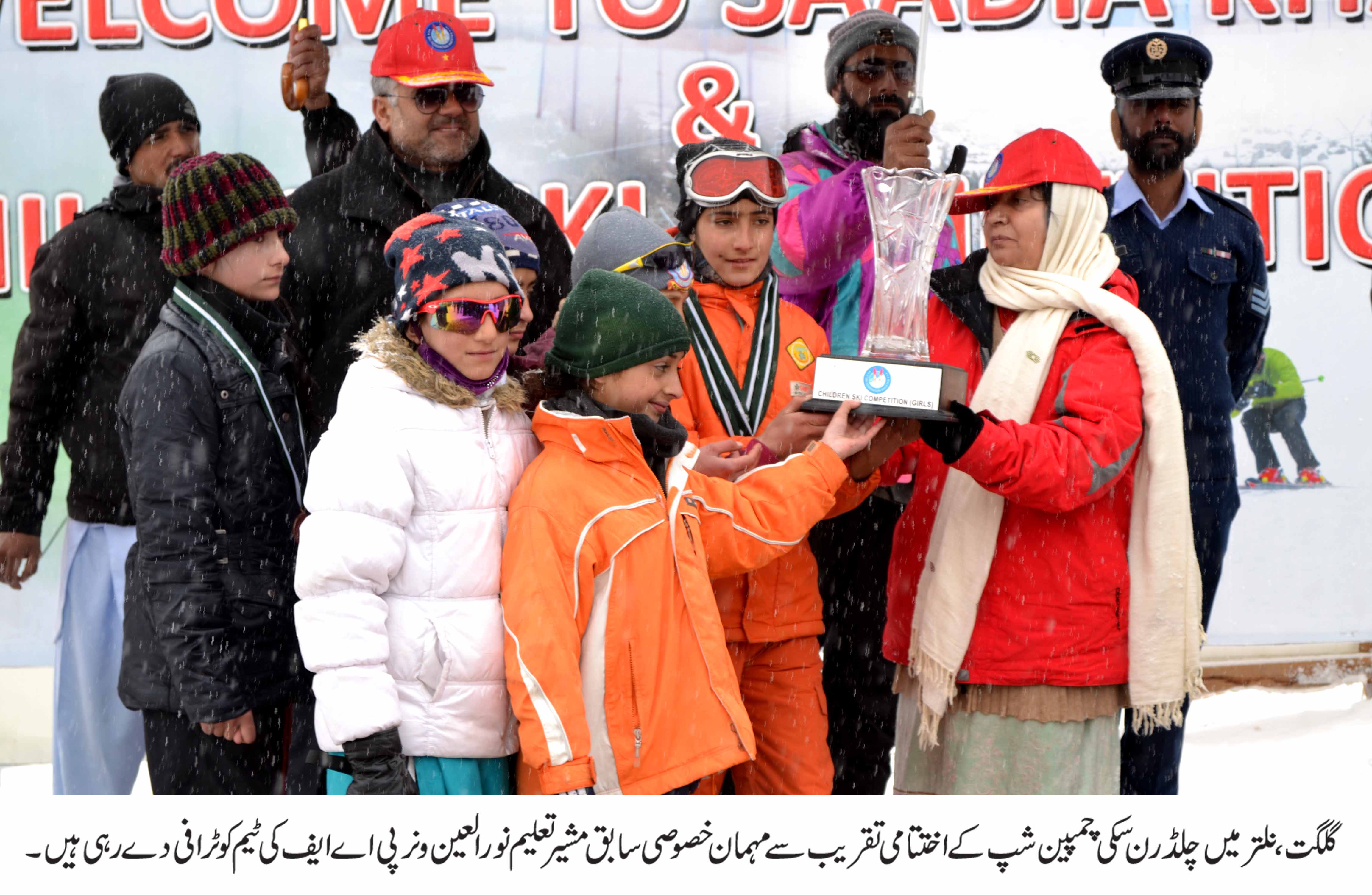 گلگت( فرمان کریم) ضلع گلگت کے سیاحتی مقام نلتر میں سعدیہ خان اینڈ چلڈرن سکی چمپین شپ اختتام پذیر ہو گئی۔ سعدیہ خان کے نام سے منسوب ٹرافی ہائیر ایجوکیشن کمیشن کی ٹیم نے حاصل کر لی، جبکہ چلڈرن سکی چیمپئین شپ میں پاک فضائیہ کے ننھے شاہینوں نے میدان مارلیا۔