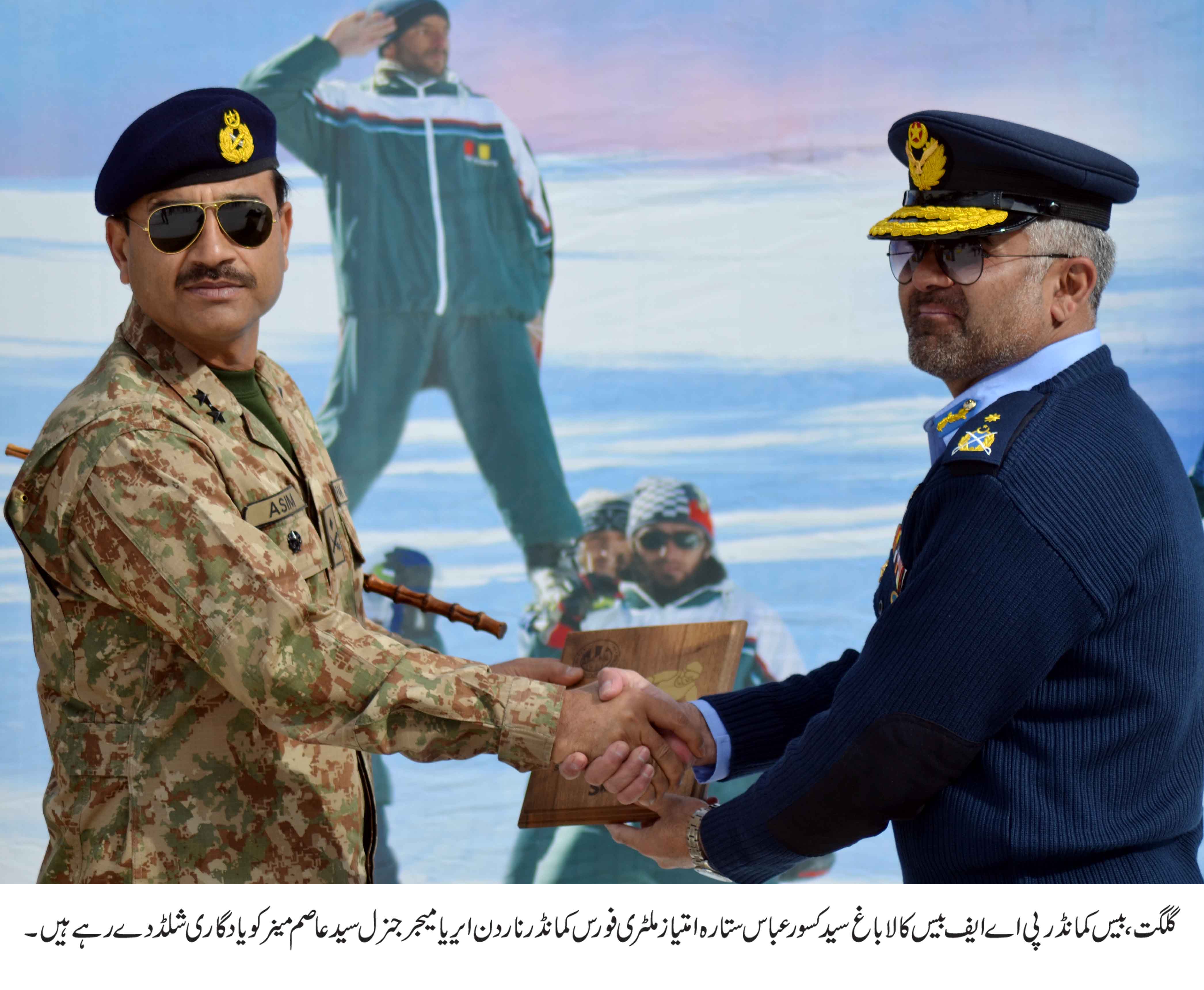 گلگت( فرمان کریم)ہر سال کی طرح گلگت کے سیاحتی مقام نلتر میں چیئرمین جوائنٹ چیف آف سٹاف کمیٹی سکی کپ، شاہ خان سکی کپ اور انٹر سروسز سکی کپ کا آغاز ہو گیا ۔ ا فتتاحی تقریب کے مہمان خصوصی فورس کمانڈر ناردن ایریاز میجر جنرل سید عاصم مینر تھے۔ مہمان خصوصی نے افتتاحی تقریب سے خطاب کرتے ہوئے کہا کہ اس قسم کی سرگرمیوں سے ہمارے نئے کھلاڑیوں کو اپنے اندر چھپی پوئی صلاحیتوں کو اجاگر کرنے کا موقع ملے گااور کھلاڑیوں کو انٹرنیشنل سطح پر اپنے ملک کا نام روشن کرنے کا موقع ملے گا۔پاک فضائیہ اور پاکستان سکی فیڈریشن کی کاوشوں سے انٹر نیشنل سطح پر سکی کو فروغ دینے میں اہم کردار ادا کیا ہے۔اُنہوں نے کہا کہ یہ بات حوصلہ افزا ہے کہ پاکستان سکی فیڈریشن اور پاک فضائیہ نے نلتر میں بچوں کے لئے سکی سکول قائم کیا ہے اور امید ہے کہ بچے سکی کے ساتھ اپنے اعلیٰ تعلیم پر توجہ دے کر ملک کا نام روشن کرینگے۔افتتاحی تقریب سے خطاب کرتے ہوئے مہمان خصوصی نے کہا کہ نلتر میں سکی ریزوٹ کو انٹر نیشنل معیار کے مطابق بنائے گئے ہیں۔جس میں پاکستان سکی فیڈریشن اور پاک فضائیہ کی انتظامیہ نے بہت محنت کی ہے جو کہ قابل ستائش ہے۔