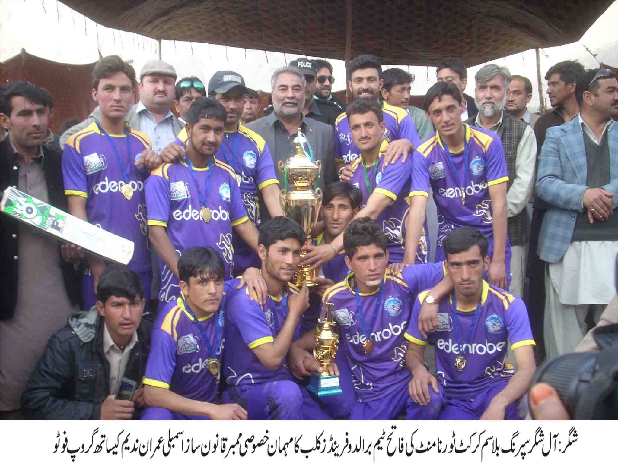 گلگت (پ ر) امپھری یوتھ آرگنائزیشن کے زیر اہتمام زیروپوائنٹ امپھری میں منعقدہ شہید امن سیف الرحمن میموریل کپ شوٹنگ بال ٹورنامنٹ 2016کا فائنل میچ ڈاکٹر کلب خومر کی ٹیم نے کاشف الیون کشروٹ کی ٹیم کو کانٹے دار مقابلے کے بعد2سیٹس کے مقابلے میں 3سیٹس سے ہراکر ٹرافی اپنے نام کرلی ڈاکٹر کلب خومر کی طرف سے شاندار کھیل کا مظاہرہ کرنے پر راجو کو مین آف دی سیریز کا اعزاز دیا گیا جبکہ کاشف الیون کشروٹ کے کاشف احمد کو عمدہ کھیل کا مظاہرہ کرنے پر مین آف دی میچ کا اعزاز دیا گیا فائنل میچ کے مہمان خصوصی ڈپٹی سپیکر جعفراللہ خان تھے جبکہ اسسٹنٹ ڈائریکٹر سپورٹس بورڈ حسین علی میر محفل اور مسلم لیگ ن کے سینئررہنما عتیق الرحمن صدر محفل تھے اختتامی تقریب کے مہمان خصوصی ڈپٹی سپیکر جعفراللہ خان نے جیتنے والی ٹیم کو مبلغ 8ہزار روپے دئے اور رنر ٹیم کو مبلغ 5ہزارروپے نقد دینے کا اعلان کیا۔