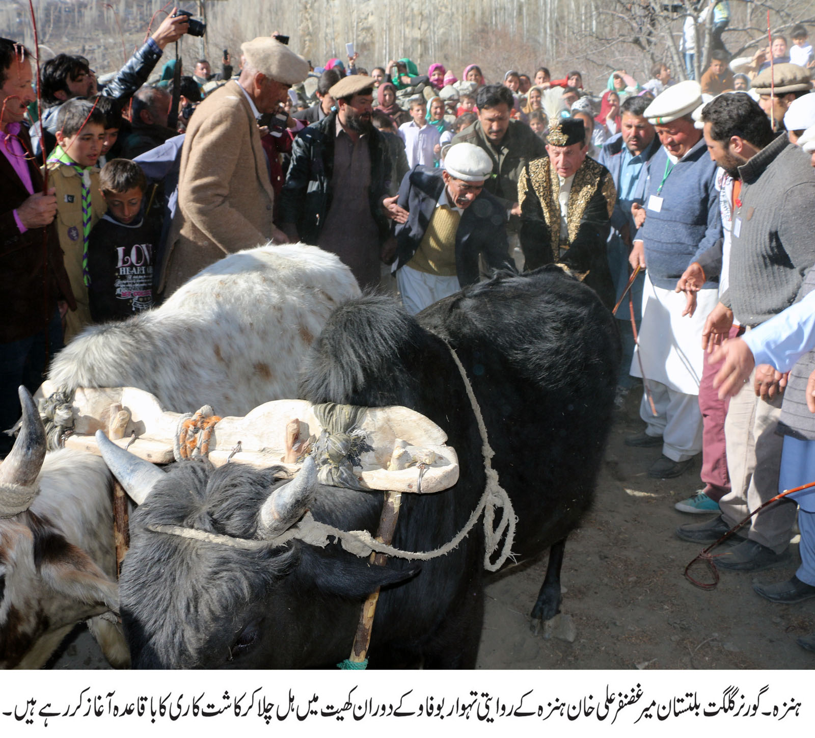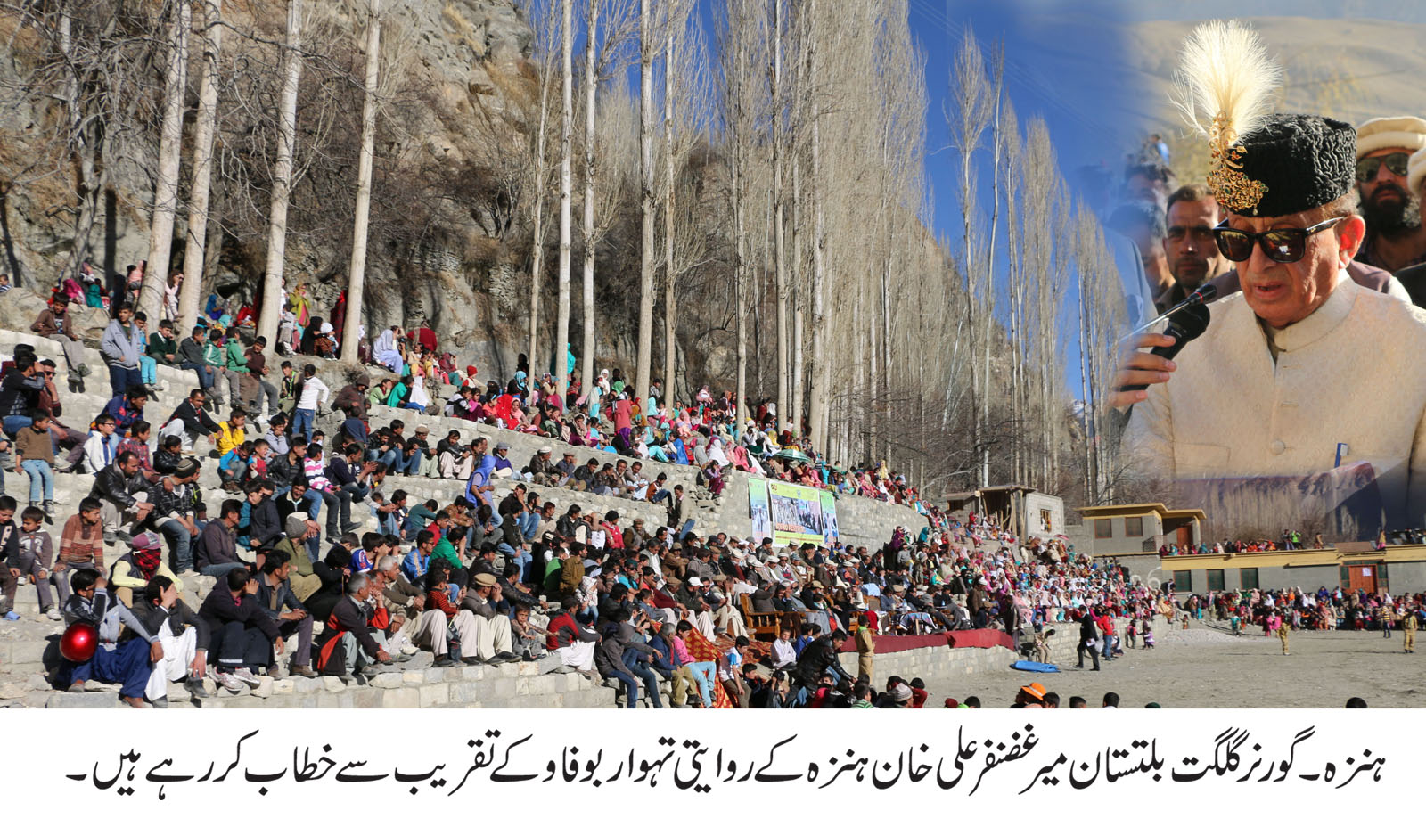 بوفاو کے اس عالیشان تقریب میں سینئر وزیر برائے بجلی و پانی حاجی اکبر خان تابان ، ممبر قانون ساز اسمبلی رانی عتیقہ غضنفر، پارلیمانی سیکریٹری محمد شفیق، پرنس سلیم خان اور تمام سرکاری و غیر سرکاری اداروں کے سربراہان نے شرکت کی ۔ سینئر وزیر حاجی اکبر خان نے ہنزہ کے عوام کا شکریہ ادا کرتے ہوئے کہا کہ اس طرح کے تہواروں کو منانے سے گلگت بلتستان کے عوام میں قومی یگانگت اور بھائی چارگی کا درس ملتا ہے اور آباو اجداد کے روایات سے بھی آگاہی ملتی ہے ۔