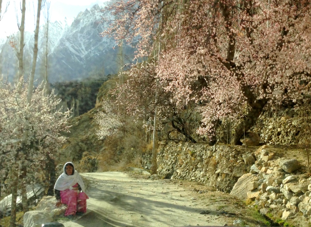 موسم بہار کی آمد کے ساتھ ہی درختوں نے پھولوں کی چادریں اوڑھ لی ہیںسردی ابھی ختم نہیں ہوئی، لیکن اسکی شدت میں بتدریج کمی ہوتی جارہی ہےتاریخی بلتت قلعہ اور پسِ منظر میں ضلع نگر کے خوبصورت مناظرالتت کے اطراف میں تیزی سے ہونے والی رہائشی اور دیگر تعمیرات کی ایک جھلک اس تصویر میں دیکھی جاسکتی ہےمرکزی ہنزہ کے جفاکش لوگوں نے اپنے ہاتھوں سے یہ کھیت تیار کئے ہیںایک بزرگ خاتون خوبصورت درختوں کے نیچے سڑک کنارے بیٹھی آرام کر رہی ہےالتت گاوں کا ایک بڑا حصہ ایک ڈھلوان پر مشتمل ہے۔ مقامی لوگوں اور ان کے اجداد نے اس ڈھلوان کو کاشتکاری کے قابل بنانے کے لئے چھوٹے چھوٹے زینہ زینہ کھیتیں بنا رکھے ہیں،اس تصویر کو دیکھ کر علامہ اقبال کی ایک نظم سے ایک مصرعہ یاد آتا ہے، "ایسا سکوت جس پر تقدیر بھی فدا ہو”