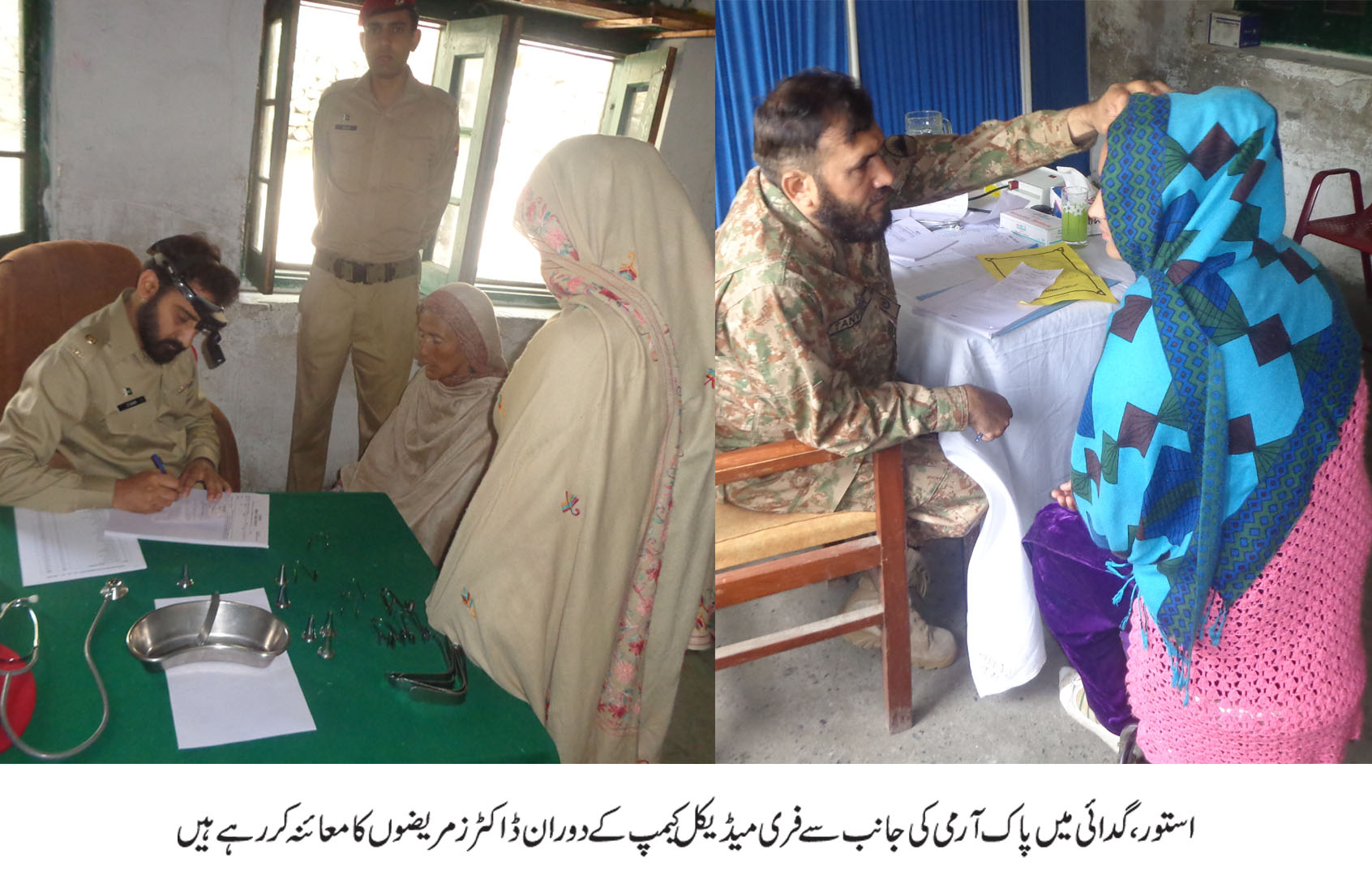 گلگت( پ ر) حالیہ بارشوں کی وجہ سے پیدا شدہ سنگین حالات اور گلگت بلتستان میں سٹرکوں کی بندش کی وجہ سے یہاں کے غیور عوام مشکلات کا شکار ہیں وہاں دور افتادہ علاقوں مین ڈاکٹروں کا نہ ہونا اور ادویات کی کمی کی وجہ سے مشکلات زندگی اور بڑھ گئی ہے۔ مشکل کی اس گھڑی میں پاک فوج اپنے بھائیوں کے شانہ بشانہ کھڑی ہے۔ اس ضمن میں عوام ا لناس کی خدمت اور بھلائی کی خاطر مفت میڈیکل کیمپ ضلع گانچھے کے دور افتادہ مقام وادی تھلے میں 17تا 19مئی 2016کو منعقد کرنے کا فیصلہ کیا گیا ہے۔ جس میں میڈیکل آفسیر، میڈیکل سپشیلسٹ، ماہر امراض چشم، ماہر امراض دانت، ماہر امراض دماغ، پیتھیالوجسٹ ، ماہر امراض زچگی اور لیڈی میدیکل آفسیر کی سہولیات مہیا کی جائے گی اس کے علاوہ لیبارٹری، ای سی جی اور میڈیکل سٹور کی سہولیات بھی مہیا کی جائے گی۔