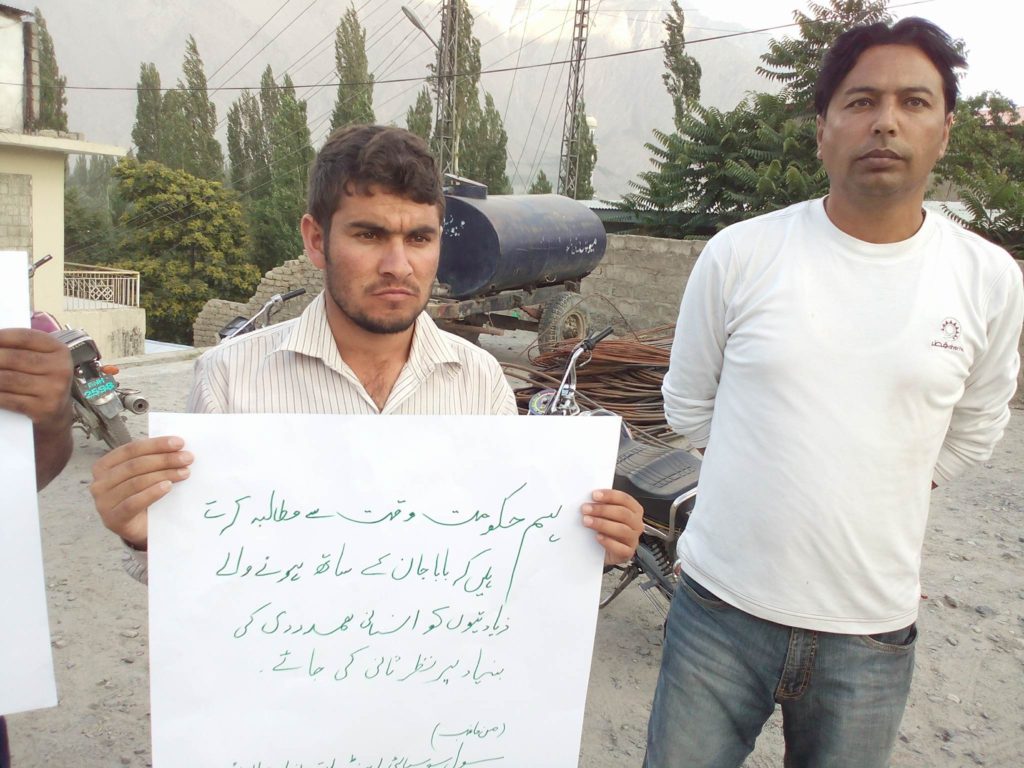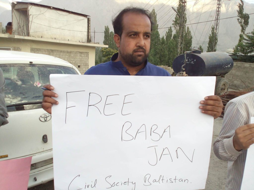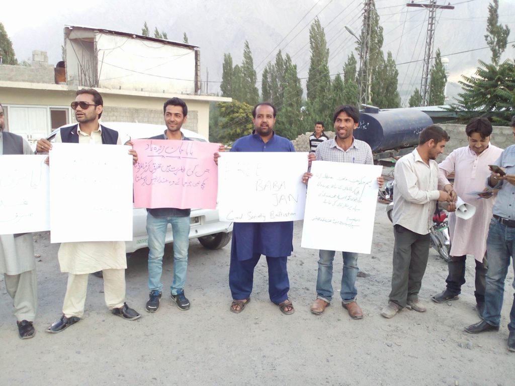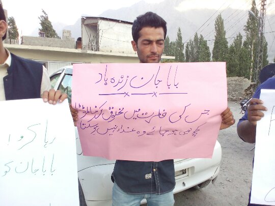 سکردو میں سول سوسائٹی اور بلتستان یوتھ الائنس کے زیرِ اہتمام اسیر ترقی پسند رہنما بابا جان کے حق میں احتجاجی مظاہرہ