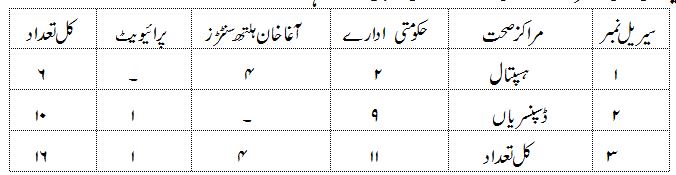 یاسین میں مراکز صحت کی تعداد کچھ اس طرح سے ہے۔