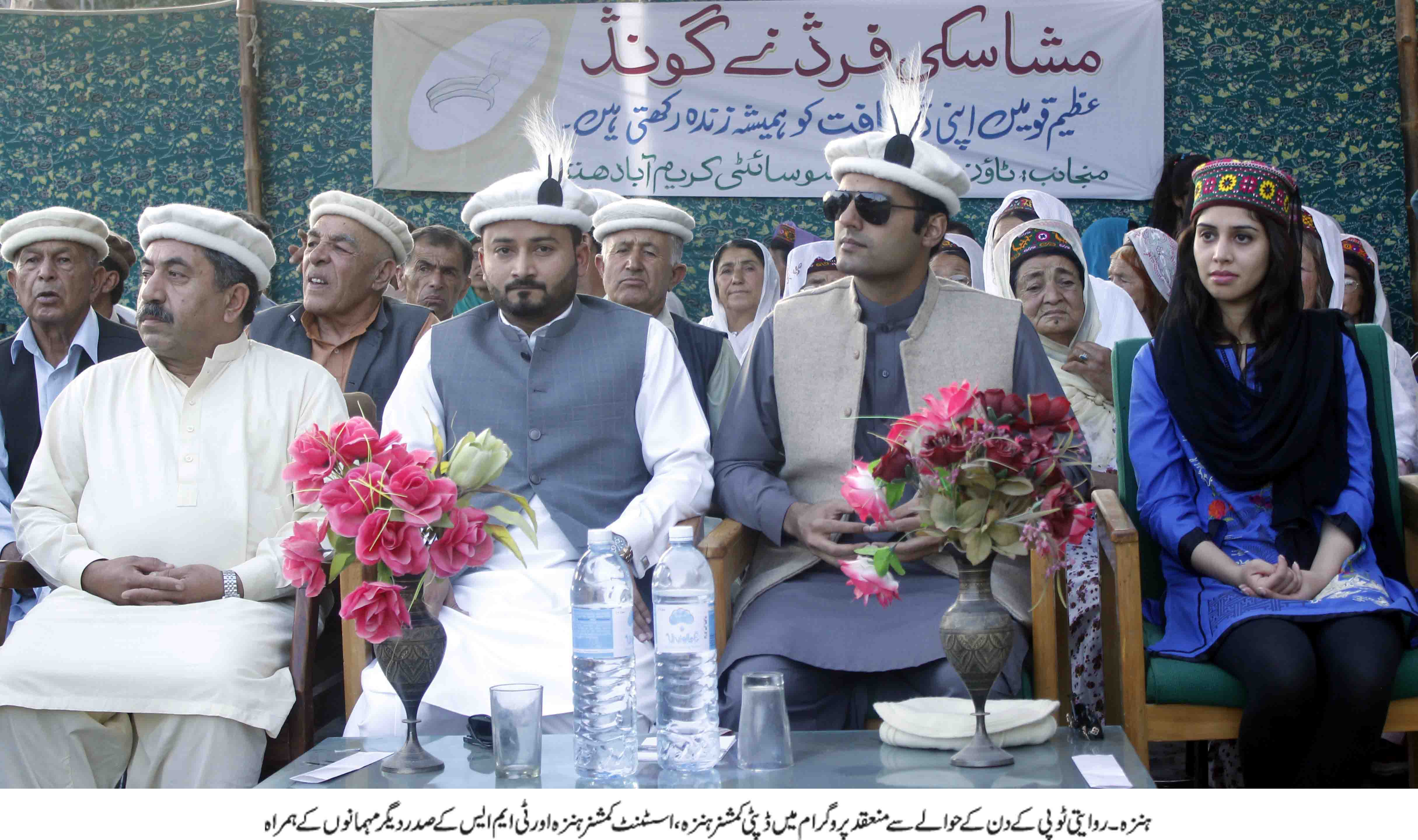 پروگرام کے میزبان ادارے ٹاوٗن منیجمنٹ سوسائی کے صدر اور ہنزہ کے سیاسی و سماجی شخصیت سلطان مدد نے پروگرام سے خطاب کرتے ہوئے کہا کہ گلگت بلتستان میں روایتی ٹوپی کی اپنی ایک اہمیت اور قدر ہے یہ روایتی ٹوپی مختلف ناموں کے ساتھ گلگت بلتستان کے تمام حصوں کی پہنا جاتا ہے جو قدیم بلور اور بروشال تہذیبوں کا مشترکہ نشانی ہے دور حاضر میں معاشی ترقی کے ساتھ ساتھ ہمارے روایتی لباس جو ہمارے ثقافت کا ایک اہم جز تھا ان کے مہدوم ہونے کا خطرہ پیدا ہوا ہے آج کے پروگرام مقصد بھی یہی ہے کہ ہم اپنی ثقافت اور روثے کی حفاظت کرے تاکہ ہماری پہچان قائم رہے ۔