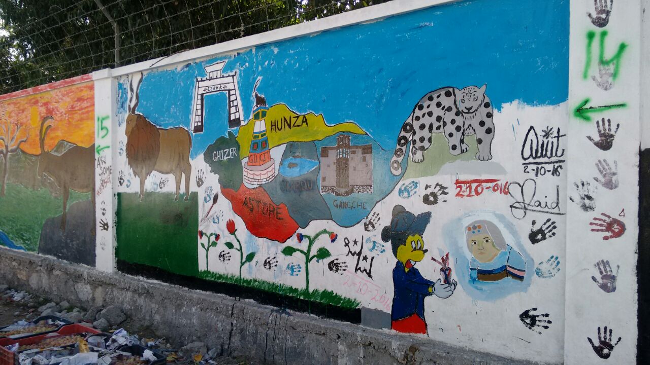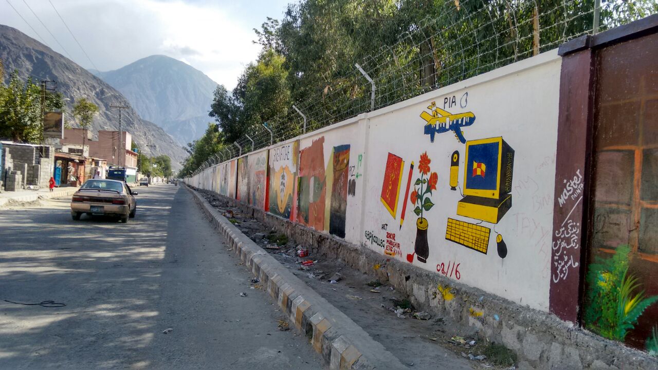 گلگت (عبدالرحمن بخاری) گلگت بلتستان حکومت کی درخواست پر نیشنل کالج آف آرٹس لاھور کے طلبا کا 30 رکنی گروپ گلگت شہر کی دیواروں کو خوبصورت بنا رہے ہیں۔