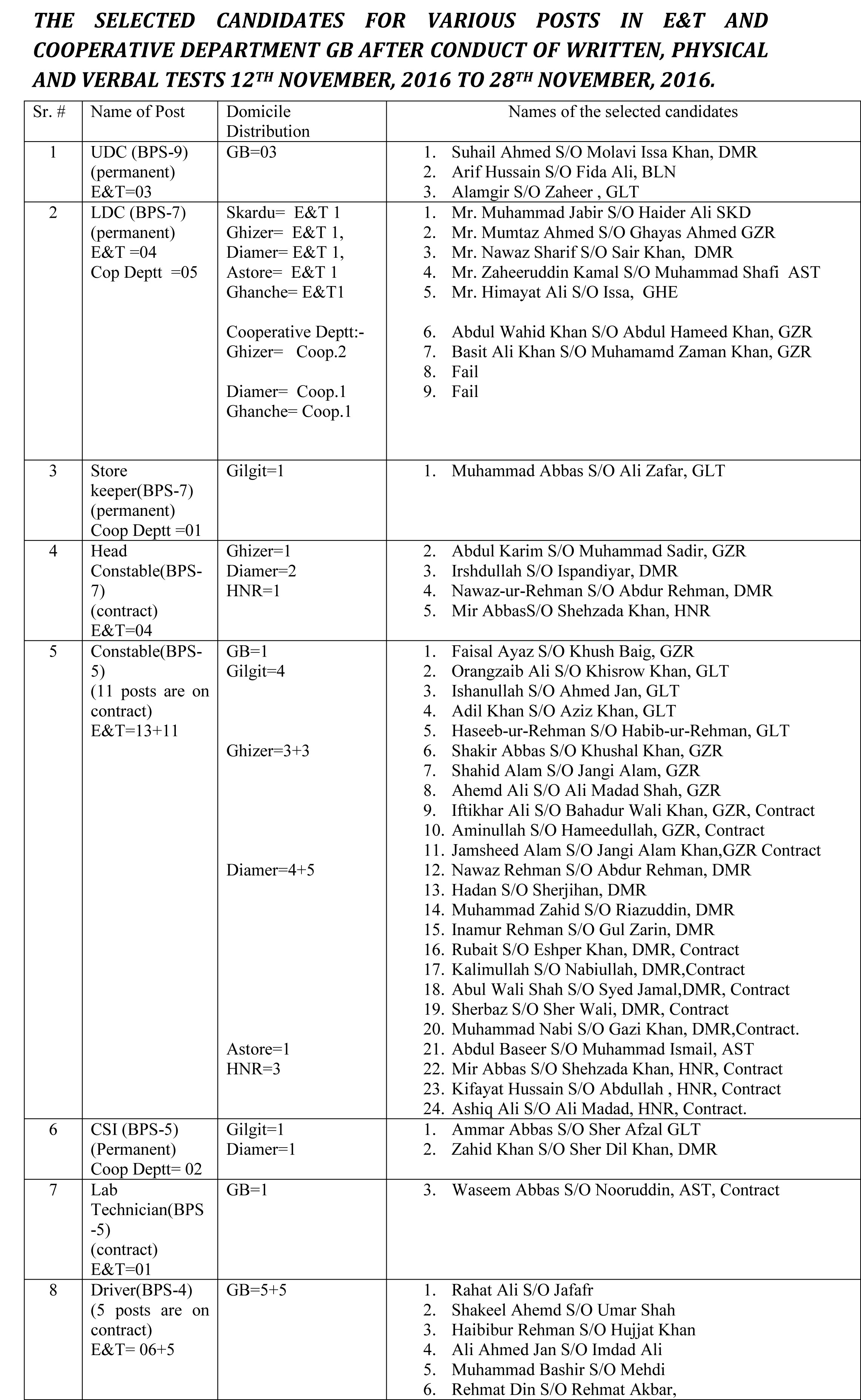 گلگت : گلگت بلتستان محکمہ ایکسائیز میں پہلی مرتبہ شفاف ترین بھرتیاں کر کے غریب اور مستحق عوام کو ان کا جائزحق دیا گیا ۔ ایک پریس ریلیز میں سیکر یٹری ایکسائز اینڈ ٹیکسیشن سیدعبدالوحید شاہ نے کہا نتائج کے بارےمیں کہا ہے کہ ہم وزیراعلیٰ گلگت بلتستان حافظ حفیظ الرحمان اور چیف سیکرٹری گلگت بلتسان کے بہت شکر گزار ہیں جنہوں نے میرٹ کی بالادستی کے لئے انتہائی ساتھ دیا اور ہر طرح کے دباؤ کو اپنے اوپر لے کر محکمہ ایکسائز میں میرٹ پر بھرتیاں کرنے کے لئے سیکرٹری ایکسائز اور دیگر آفیسران کی حوصلہ افزائی کی۔ان امتحانات میں پاک فوج کے علاوہ محکمہ فنانس اور محکہ سروسیزکے ایماندار ترین آفیسران کی خدمات حاصل رہیں۔ امتحانات میں تحریری ،جسمانی اور عملی امتحانات کے علاوہ زبانی امتحانات بھی لئے گئے ۔امیداروں میں اعلیٰ تعلیم یافتہ اور غریب طبقہ کے لوگوں کا شامل ہو کر نظام پر اعتماد کرنا ادارے کے لےئے بہت خوش آئندہے۔جن عہدوں کے لےئے امتحانات لے گئے ان میں یو ڈی سی،ایل ڈی سی، اسٹور کیپر،سی ایس آئی،ہیڈ کانسٹیبل ،کانسٹیبل،ڈراےؤر،نائب قاصد ،چوکیدار،فالور اور کک کی اسامیاں شامل ہیں۔معذور کوٹہ اور خواتین کا کوٹہ کی اسامیاں بھی تحت ضابطہ پر کی گئی۔اس سلسلے میں مورخہ 30نومبر کو سیکرٹری ایکسائز کے دفتر میں حلف برداری ہوگی اور تمام بھرتی شدہ امیدوارں کے ساتھ تفصیلی نشست ہوگی۔
