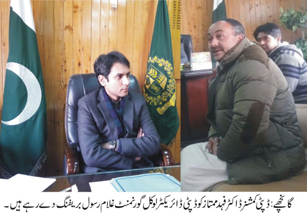 گانچھے، محکمہ لوکل گورنمنٹ نے گزشتہ دو کروڑ تراسٹھ لاکھ روپے کا ترقیاتی بجٹ سے ضلع بھر میں 145 سکیمیں بنائی۔ ڈپٹی ڈائریکٹر لوکل گورنمنٹ غلام رسول
