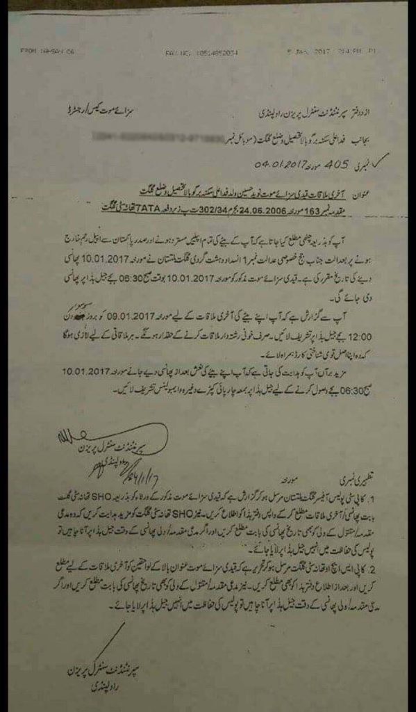 بارگو گلگت سے تعلق رکھنے والے قتل کے ملزم کو آج صبح اڈیالہ جیل راولپنڈی میں پھانسی دی جائے گی