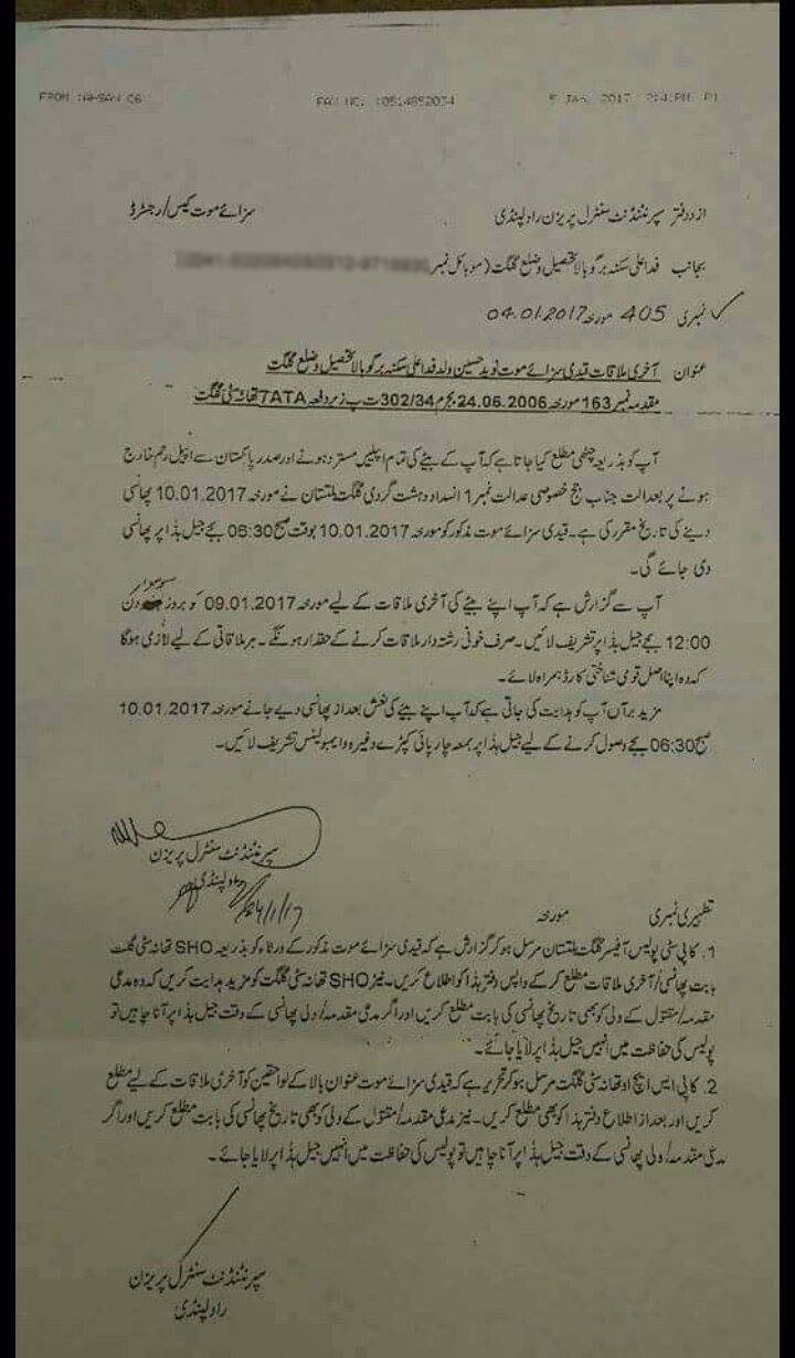 زرائع كے مطابق رشتہ داروں سے آخری ملاقات کر رہے ہیں۔