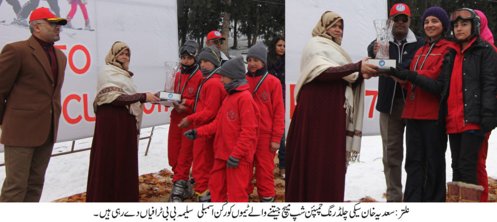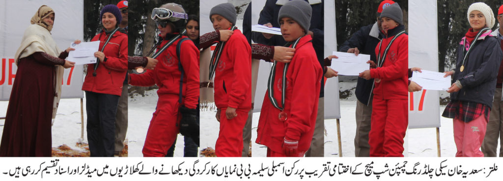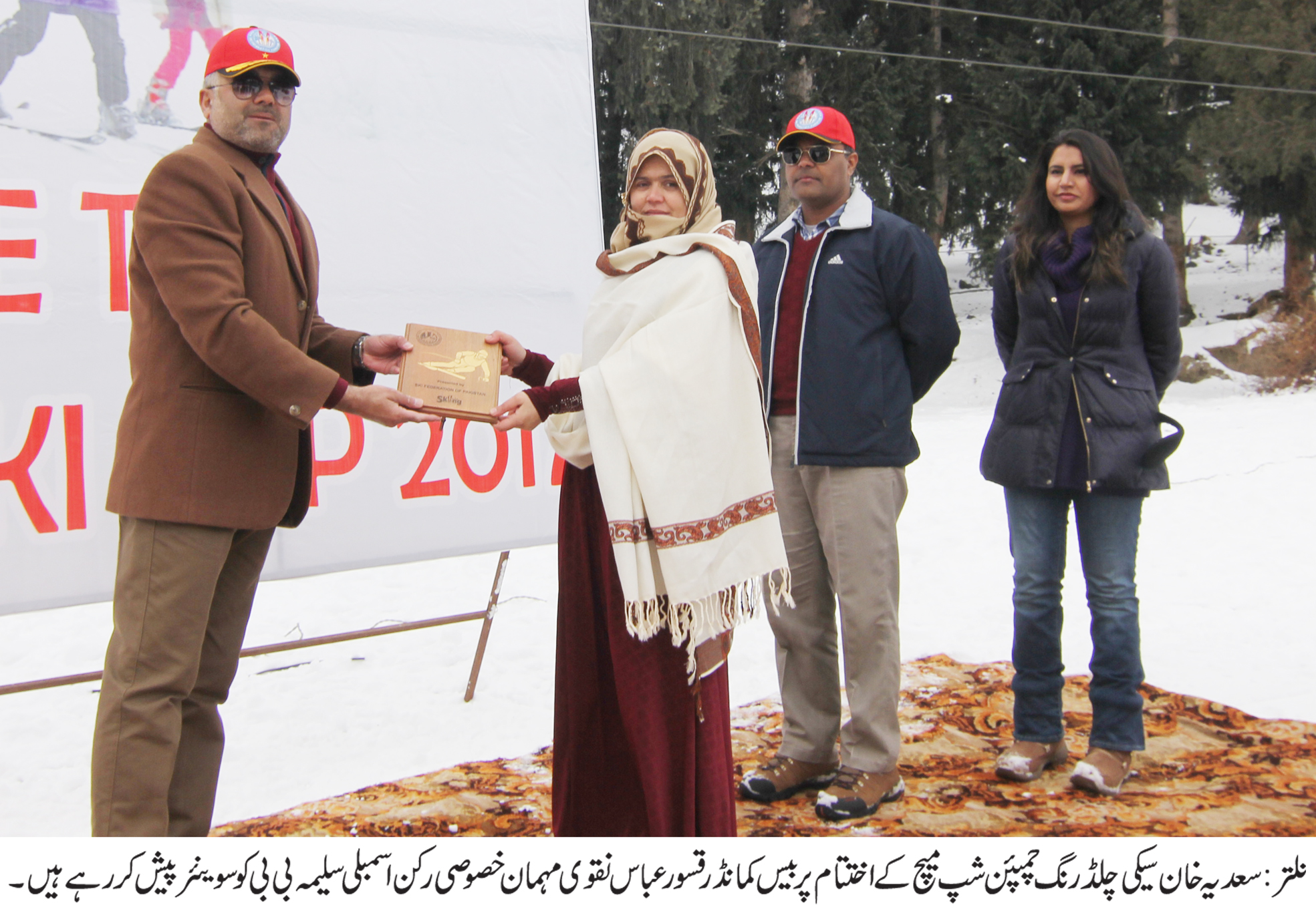 قبل ازیں بطور مہمان خصوصی بی بی سلیمہ نے سکی مقابلے جیتنے والے کھلاڈیوں میں کپ ،میڈلز اور سرٹیفیکیٹس تقسیم کئے۔