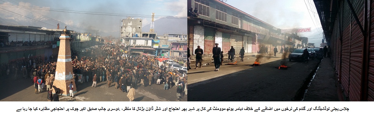 چلاس: بجلی کی طویل لوڈشیڈنگ اور گندم کی قیمتوں میں اضافہ کے خلاف مظاہرہ اور شٹر ڈاؤن ہڑتال، مطالبات کی منظوری کے لئے ایک ہفتے کی ڈیڈلائن دیدی گئی