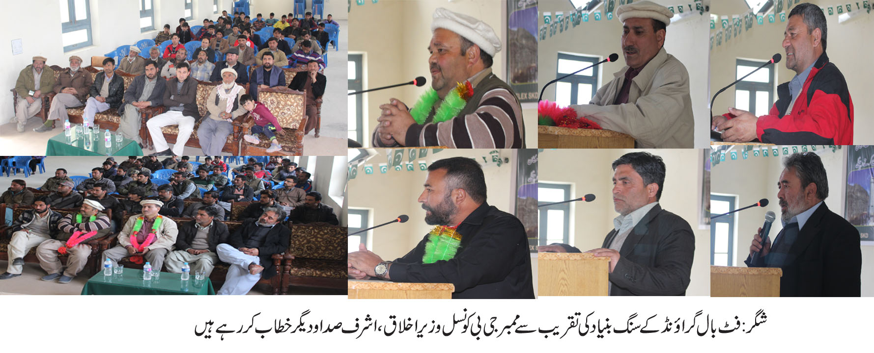 ان خیالات کا اظہار ممبر گلگت بلتستان کونسل وزیر اخلاق حسین، اشرف صدا ،سابق صوبائی و زیر راجہ اعظم خان،سید محمد عراقی،وزیر جعفر اور دیگر نے شگر میں فٹ بال گراؤنڈ کی سنگ بنیاد کی تقریب سے خطاب کرتے ہوئے کیا۔