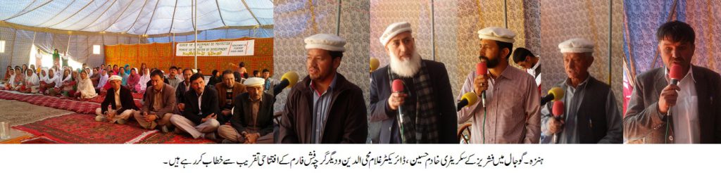 سیکریٹری خادم حسین نے مزید کہاکہ خواتین کو روز گار کے مواقعے فراہم کرنے کیلئے ٹنل دینگے تاکہ زیادہ سے زیادہ سبزیوں کی پیداروار ہوسکیں ۔تقریب سے خطاب کرتے ہوئے ڈائریکٹر غلام محی الدین نے کہاکہ میں گرچہ گوجال کے عوام کو داد دیتا ہوں کہ اُنہوں نے محکمہ فشریز کیساتھ ملکر اتنے قلیل وقت میں اتنے محنت سے اس ٹاسک کو مکمل کیا اور ہمیں اس قابل بنایا کہ آپ کے سامنے کھڑے ہوکر بات کر سکیں ۔ ہنزہ کے عوام باشعور ہے ۔ مجھے اُمید ہے کہ اس فش فارم سے علاقے کو فائیدہ ہوگا ۔