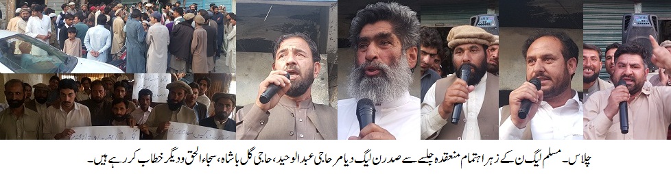 چلاس میں منعقدہ جلسہ عام سے خطاب کرتے ہوئے صدر ن لیگ دیامر حاجی عبدلواحید،جزل سیکرٹری مختار حسین،مسلم ن ضلع کوہستان کے صدر حاجی گل باشاہ،مسلم لیگ ن دیامر کے سینئر نائب صدر مولانا سجاء الحق،ڈویژنل نائب صدر حاجی کالا خان،سیکرٹری اطلاعات شریف شاہ،چوہدری جعفر،عاطف محمودو دیگر نے کہا کہ پانامہ کیس کا رونا رونے والے سیاستدانوں کی سیاست آج دفن ہوچکی ہے ،عمران خان اور سراج الحق کو منہ کی کھانی پڑی ہے ۔