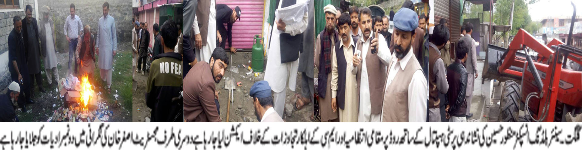 اس سلسلے میں اسسٹنٹ کمشنر گلگت نے سینئر بلڈنگ انسپکٹر منظور حسین کی نشاندہی پر سٹی ہسپتال کے ساتھ مین روڈ پر کیئے جانے والے تجاوزات کے خلاف کاروائی کے دوران غیر قانونی طور پر تعمیر کئے جانے والے دکانوں کو اکھاڑ دیا گیا اور بھاری جرمانے بھی عائد کردئے گے اس موقع پر اسسٹنٹ کمشنر گلگت کے حکم کوبھی دکانداروں کو سنایا گیا کہ مین روڈ کے ساتھ تعمیرات کرنے سے قبل میونسپل کارپوریشن بلڈنگ سیکشن کی طرف سے لاگو بائی لاز کو ملحوظ خاطر رکھ کر تعمیرات کرنے کے پابند ہیں بصورت دیگر بغیر اجازت تعمیرات کرنے والوں کے خلاف کاروائی جاری رہے گی ۔