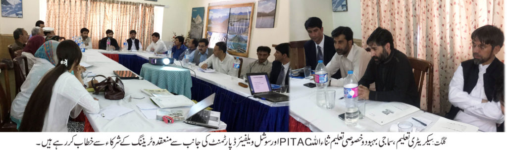 گلگت ( پ ر) سیکریٹری تعلیم، سماجی بہبو د و خصوصی تعلیم ثناء اللہ نے سوشل ویلفیئر آفیسرز کے لیئے منعقد کردہ پانچ روزہ ٹریننگ ورکشاپ کے اختتامی سیشن سے خطاب کرتے ہوئے کہا کہ حکومتی افسران کے لیے اس طرح کی ٹریننگ اور ورکشاپس کا قیام نہایت ہی مثبت قدم ہے جس سے ان کی صلاحیتیوں کو نکھارنے کاموقع ملتا ہے۔ سوشل ویلفیئر ڈپارٹمنٹ اور پاکستان انڈسٹریل ٹیکنیکل اسسٹنس سنٹر گلگت کے اشتراک سے گلگت کے ایک مقامی ہوٹل میں یہ تربیتی ورکشاپ پانچ دنوں پر مشتمل تھی جس میں ماہر ٹرینرز نے شرکاء کو فنانشل مینیجمنٹ ،پروپوزل رائٹینگ، پراجیکٹ مینیجمنٹ،آفس نوٹنگ و ڈرافٹنگ اور رولز آف بزنس آف گورنمنٹ جیسے اہم موضوعات پر سیر حاصل لیکچرز دیئے۔ گلگت بلتستان بھر سے 13سوشل ویلفیئر آفیسرز نے اس ورکشاپ سے استفادہ حاصل کیا ۔