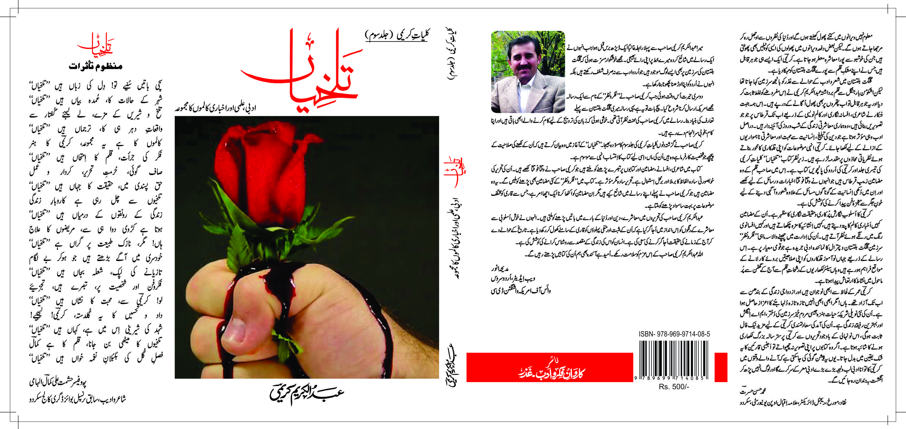 میں مولوی عبدالحق اور میرزا اسد اللہ خان غالب سے معذرت کے ساتھ ذرا اختلاف کرنے کی جسارت کرتا ہوں کہ بیوی پیر کی زنجیر کی حیثیت نہیں بلکہ ادب سے شغف رکھنے والی بیوی شوہر کے لیے خوش قسمتی کا درجہ رکھتی ہے۔ سوسن کا شکریہ کہ انہوں نے ہماری پہلی رفیقۂ حیات کو تنگ نہیں کیا بلکہ انہوں نے اپنی سوکن کا محبت سے ساتھ دیا تب کہیں جاکے پہلی رفیقۂ حیات سے کلیاتِ کریمی کی دوسری اور تیسری جلدیں یعنی ’’سسکیاں‘‘ اور ’’تلخیاں‘‘ کا جنم ہوا۔ ہماری اردو میں لکھی ہوئی کتابوں میں ’’سسکیاں‘‘چوتھی اور ’’تلخیاں‘‘ پانچویں کتاب ہے۔ آخر آپ کی تخلیقات اور کتابیں بھی تو آپ کے بچوں کی طرح ہوتی ہیں۔ اس لحاظ سے اب تک مجھے پانچ کتابوں اور دو بچوں کے باپ ہونے کا اعزاز حاصل ہو رہا ہے۔ سو، ہمیں اُمید ہے کہ ان جڑوے بچوں کی پیدائش پر اور سب سے اہم بات ہماری سوکنوں کی محبت پر ان کو مبارکباد دینے کے لیے آپ ہمارے ساتھ دیں گے۔ ان نئی کتابوں کی تقریب رونمائی بہت جلد آپ سب کی محبتوں کی صورت میں منعقد ہوگی۔
