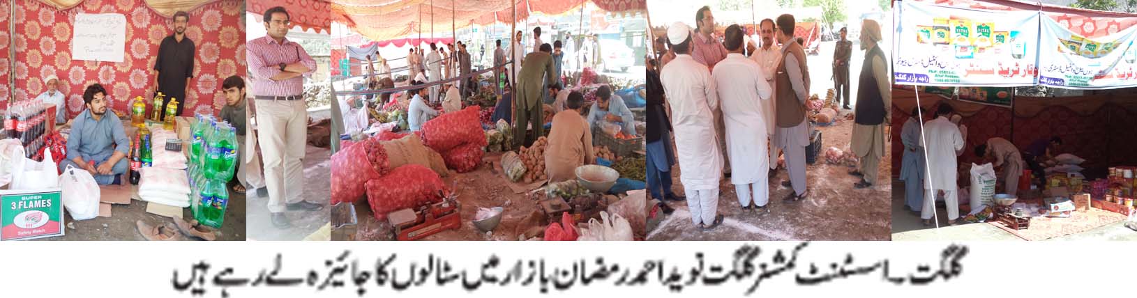 گلگت (پ۔ر) رمضان بازار میں خریداروں کا غیر معمولی رش ،روزہ داروں نے آٹے، سبزی پھل فروٹ ،چینی دالیں ،چاول،مشروبات اور دیگر اشیاء کی بڑے پیمانے پر خریداری کی بازار اور مارکیٹ ریٹ کی نسبت 5سے 10روپے کمی پر مشتمل اشیاء کی دستیابی پر عوامی حلقوں نے مقامی انتظامیہ کی طرف سے رمضان بازار کے قیام کو احسن فیصلہ قرار دیا ۔تفصیلات کے مطابق جمعہ کے روز ر مضان بازار میں خریداروں کا غیر معمولی رش رہا ۔رمضان بازار میں مارکیٹ کی نسبت کم قیمت پر اشیاء ضروریہ کے ہر چیز دستیاب ہے جہاں یوٹیلٹی سٹور کے رعائتی اشیاء بھی دستیاب ہیں اسکے علاو ہ کریانہ کے اشیائے خوردنوش کی سہولت بھی دی گئی ہیں جسکی وجہ سے عوام نے جوق درجوق خریداری کیلئے رمضان بازار کا رخ کر لیا ہے انتظامیہ کی طرف سے قائم کردہ بازار میں تمام اشیا ء کے نرخ نامے بازار کی نرخون سے 5سے10روپے کم ہیں اور نرخنامہ بڑے بورڈ پر آویزاں کیا گیا ہے رمضان بازار میں خریداروں نے بازار کی نسبت کم قیمت پر اشیاء کی دستیابی پر مسرت کا اظہا ر کیا اور امید ظاہر کی ہے کہ رمضان المبارک کے بابر کت مہینے میں انتظامیہ رمضان بازار کو کامیابی کے ساتھ جاری رکھے گی اور تمام پھلوں اور سبزیوں کی دستیابی کیلئے کو شاں رہے گی۔واضح رہے کی کریانہ جنرل سٹور کے مالکان نے اسسٹنٹ کمشنر کی درخواست پر پنجاب کا دانہ دار فائن آٹے کا بھی سٹال لگایا گیا تھا جو کہ مارکیٹ سے 20روپے کم قیمت پر رمضان بازار میں دستیاب ہے اسکے علاوہ چینی کے ریٹ بھی بازار کی نسبت 15روپے کم قیمت پر فروخت ہو رہی ہے