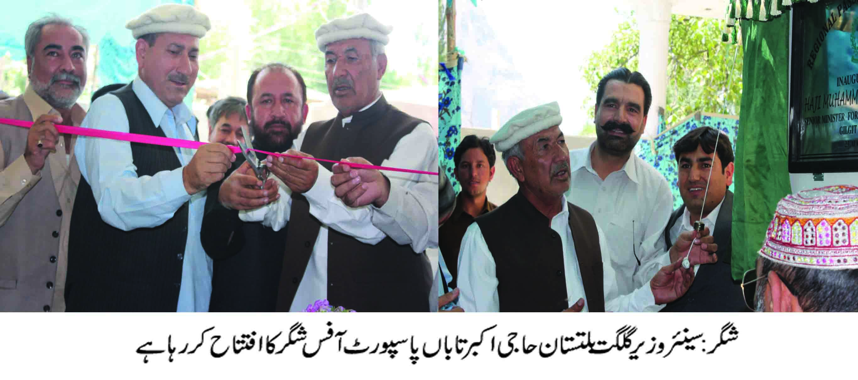 شگر(عابدشگری)پاسپورٹ آفس شگر کا آفس کا افتتاح کردیا گیا۔سینئر وزیر گلگت بلتستان حاجی اکبر تابان نے فیتہ کاٹ کر پاسپورٹ…