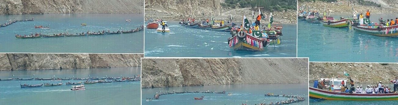 عطا آباد جھیل ششکٹ میں درجنوں کشتیوں پر مشتمل آزادی ریلی نکالی گئی