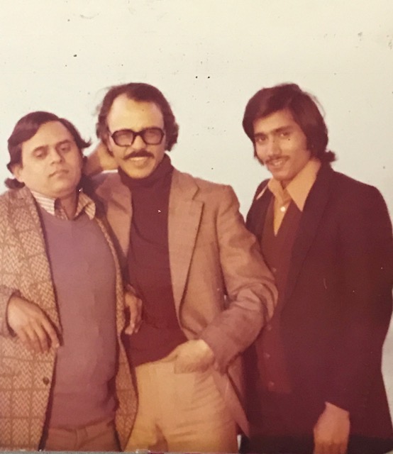 بارسلونا (سپین) میں صاحب مضمون، اپنے دوستوں، پاشا اور انور، کے ہمراہ۔ دائیں میں آخر میں کھڑے دوست کا نام ذاکر ہنزائی صاحب کو اب یاد نہیں رہا ہے