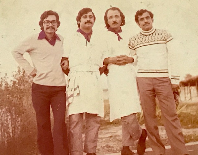 صاحب، تحریر ہوٹل کی وردی پہنے اپنے دوستوں کے ہمراہ