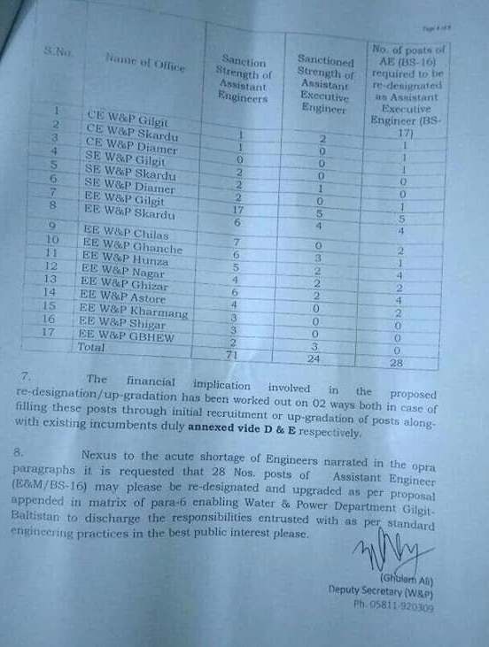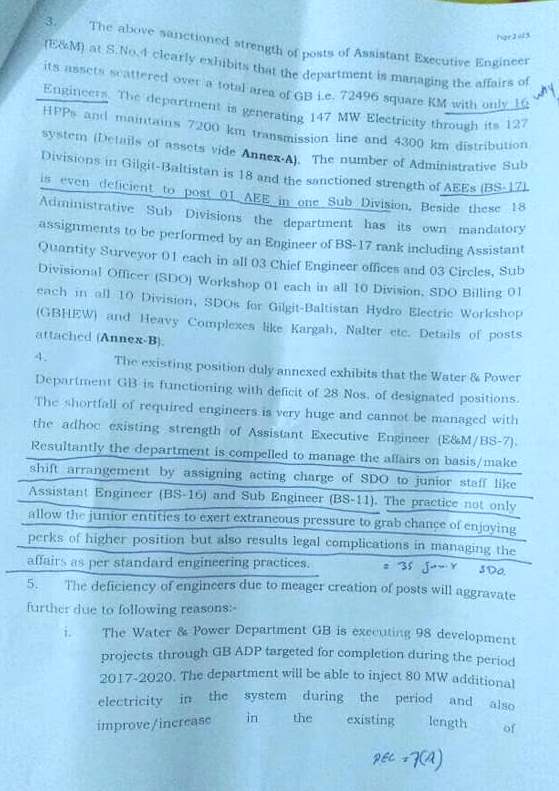انہوں نے کہا ہے کہ سیکریٹری واٹر اینڈ پاورنے ایک سمری سیکریٹری سروسز کو ارسال کی ہے کہ ڈیپارٹمنٹ میں اسسٹنٹ ایگزیکٹیو انجنیئرز گریڈ 17 کی 28 خالی آسامیاں ہیں اور ان خالی آسامیوں کو پر کرنے کیلئے ڈیپارٹمنٹ میں انجنیئرز موجود نہیں لہٰذا سب انجنیئرز کوگریڈ 11 اور اسسٹنٹ انجنیئرز گریڈ 16 کو ترقی دے کر گریڈ 17 میں بھرتی کیا جائے ۔