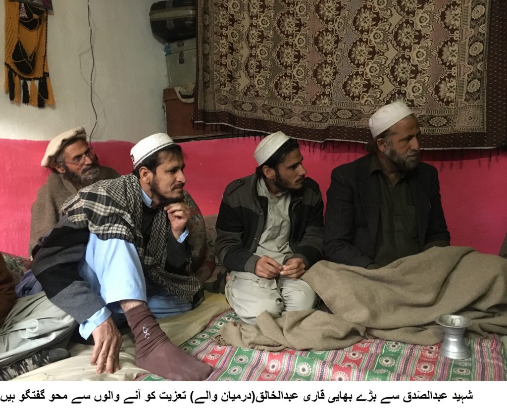 شہید عبدالصادق کے بھائی کا کہناتھا کہ تاحال صوبائی حکومت کی جانب سے اُن کے اہلخانہ سے کوئی رابطہ نہیں کیا گیا۔