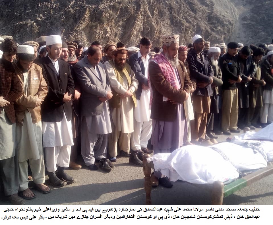شہید عبدالصادق کی نماز جنازہ داسو کوہستان کے مدنی مسجد میں ادا کی گئی جہاں ہزاروں لوگوں نے شرکت کی۔