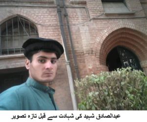 کوہستان کے مرکزی مقام داسو کے قریب کچے مکان میں رہنے والی آٹھ ماہ کی نوبیاہتا دلہن جس کے ہاتھوں کی مہندی کے گل بوٹے ابھی تازہ ہی تھے کہ نوجوان شوہر کے غم نے اُن کی زندگی کانٹوں سے بھردی۔ تحریک انصاف ضلع کوہستان کے سوشل میڈیا یونٹ کےصدر اور زرعی ٹریننگ سنٹر پشاور میں فیلڈ اسسٹنٹ کی تربیت حاصل کرنے والے سانحہ پشاور زرعی تربیتی مرکز کے شہید طالب علم عبدالصادق کی شادی ہوئے قلیل عرصہ ہی گزرا تھا، شہید نے اپنی ماں کی پسند پر اپنی کزن سے آٹھ ماہ قبل شادی کی تھی۔