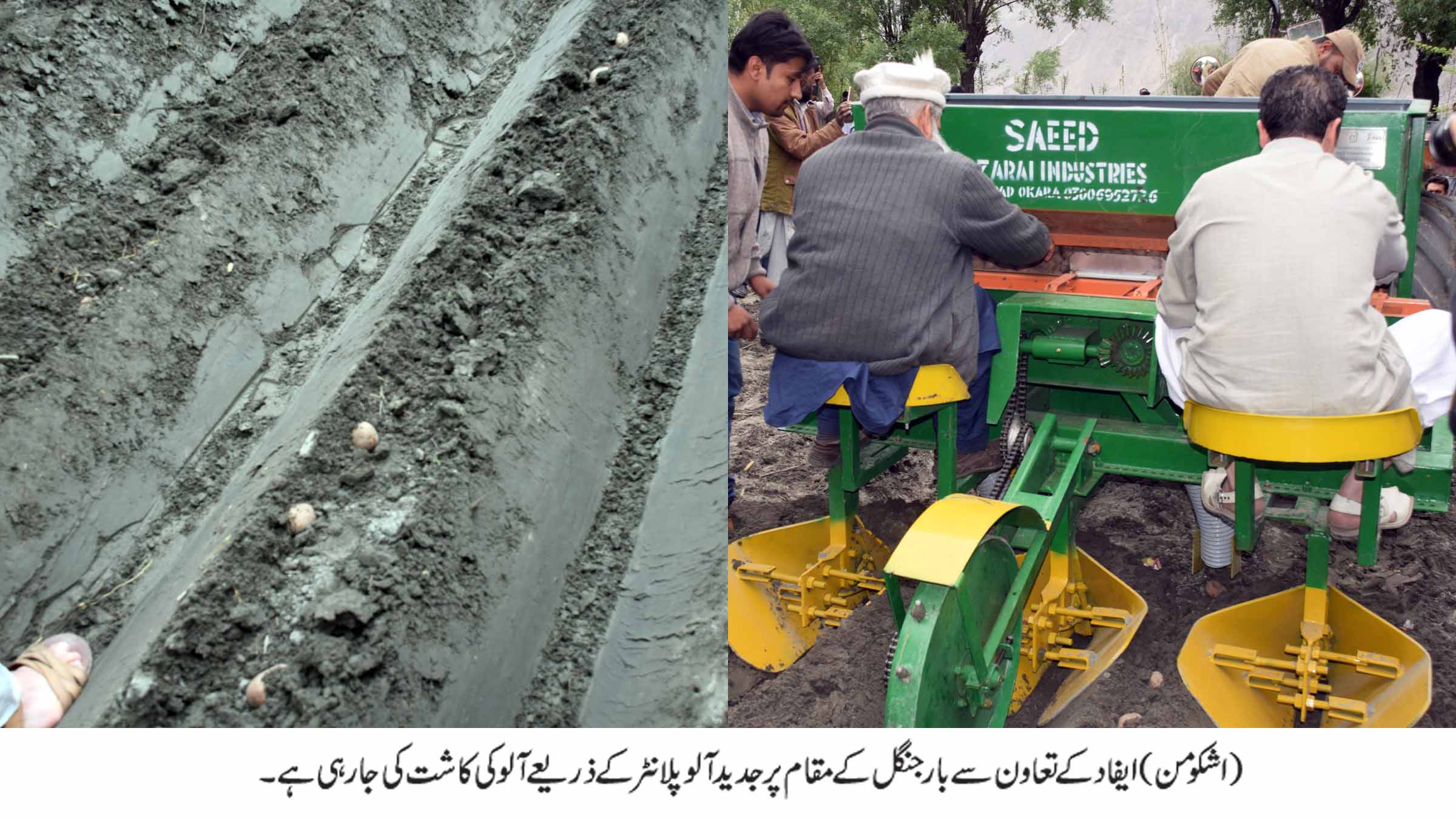 قبل ازیں ’’قرمبر کنسٹرکشن اینڈ ٹریڈنگ کمپنی‘‘ کے ایم ڈی میر وزیر میر نے ایفاد کی جانب سے فراہم کردہ آلو کی بیج کی افادیت اور ایفاد کی جانب سے علاقے کی زراعت کے فروغ کے لئے کئے جانے والے اقدامات کو سراہا۔انہوں نے کہا کہ اعلیٰ معیار کے درآمد کردہ بیج سے زمیندار آلو کی بہترین فصل حاصل کرینگے ،اس فصل کو زمیندار کے کھیت سے پانچ ہزار روپے فی بوری کے حساب سے خریداری کی جائے گی نیز کمپنی ایفاد ہی کے تعاون سے آسٹریلیا سے اعلیٰ نسل کے سو گائے درآمد کرنے کا منصوبہ بنارہی ہے جو مقامی زمینداروں کو فراہم کئے جائیں گے،یہ گائے روزانہ پندرہ سے بیس لٹر دودھ دیتی ہیں جس سے علاقے کے زمیندار حضرات استفادہ کرسکتے ہیں۔تقریب کے اختتام پر جدید آلو پلانٹر کے ذریعے آلو کی کاشت کا عملی مظاہرہ بھی کیا گیا۔
