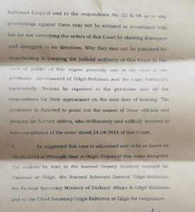 پہلا صفحہ/گورنمنٹ آف گلگت بلتستان آرڈر 2018 معطل، سپریم اپیلیٹ کورٹ گلگت بلتستان نے توہین عدالت کا نوٹس جاری کردیا/SAC5 SAC5 آپ کی رائے comments